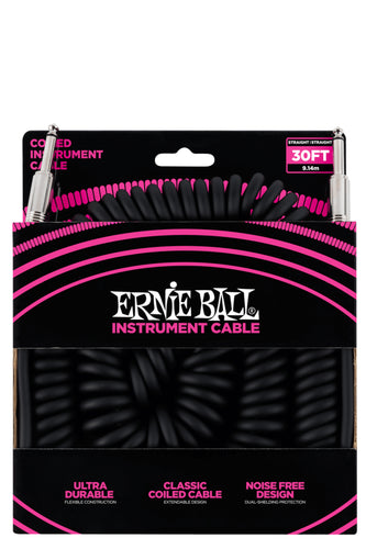 Ernie Ball Coiled Instrument Cable Straight/Straight 30ft - Black