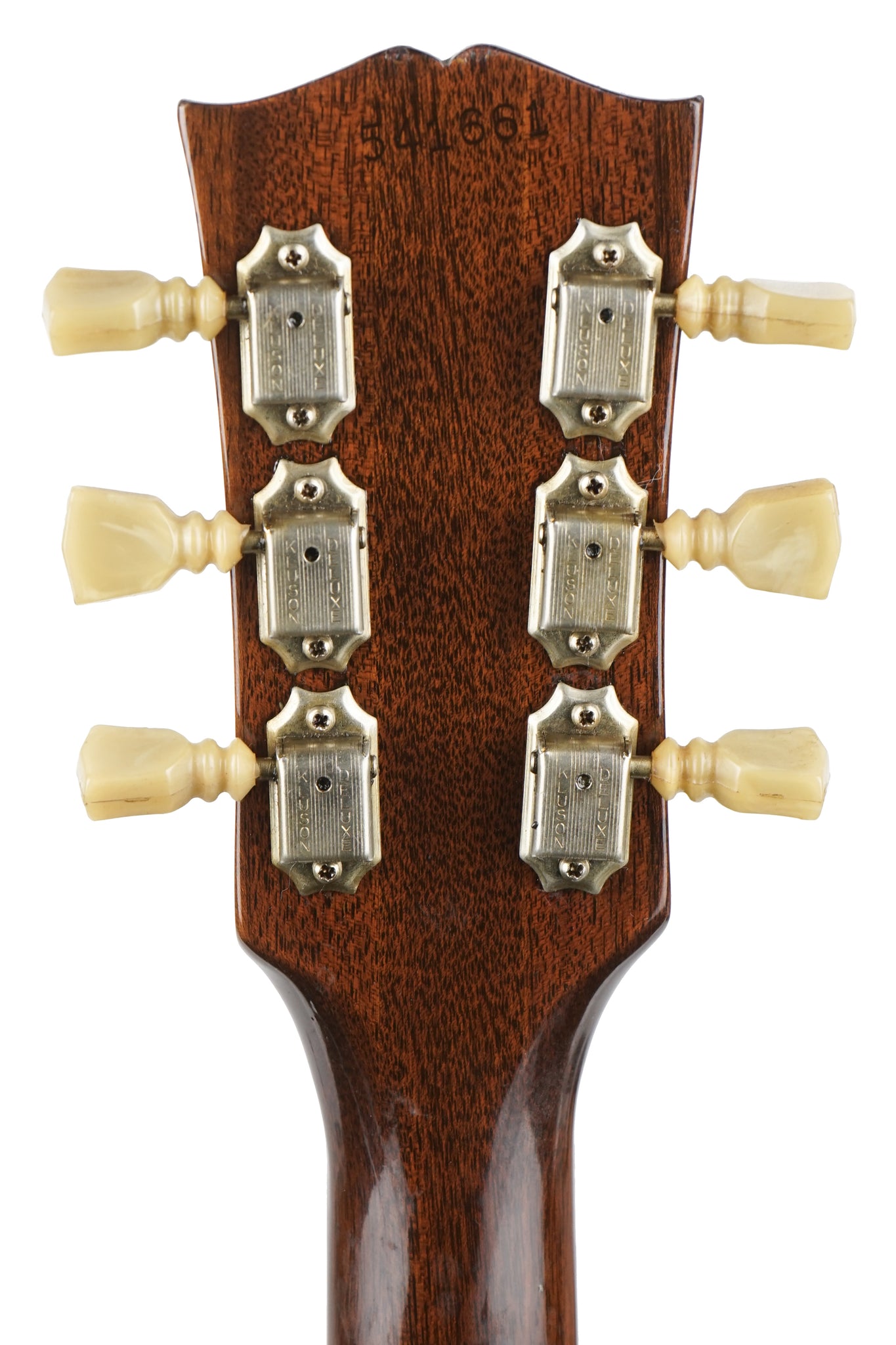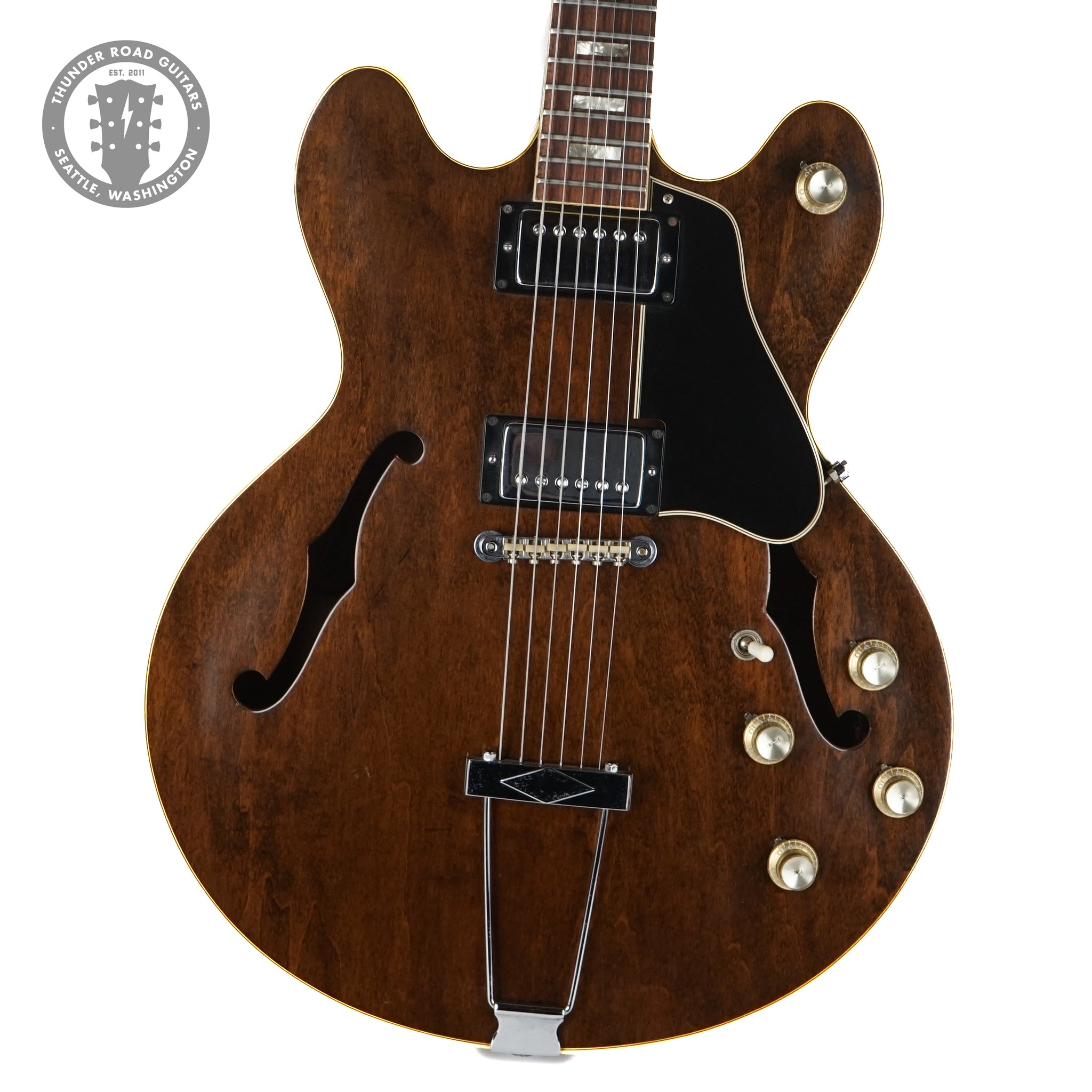 Up for sale is a super cool 1969 Gibson ES-150 DC in its original walnut finish. This model is similar to the ES-335 from the same era but with a thicker body. Features include an original set of patent sticker humbuckers, Kluson double line / double ring tuners, wide / flat fretless wonder frets, trapeze tailpiece and an orange label inside the body. Overall this example is fairly clean showing little signs of play wear or finish wear. That said, there is some finish wear and shrinking on the face of the headstock surrounding the decal and crown. There also is some finish anomaly on the back of the neck that looks as though a cleaner or lubricant was used on the tuning keys and dripped down the neck at some point and ate through the top layer of nitro finish. This is only visible under black light and cannot be felt to the touch. Pro setup in house and comes complete with a non-original hard case. Weight: 6lbs. 13oz.
