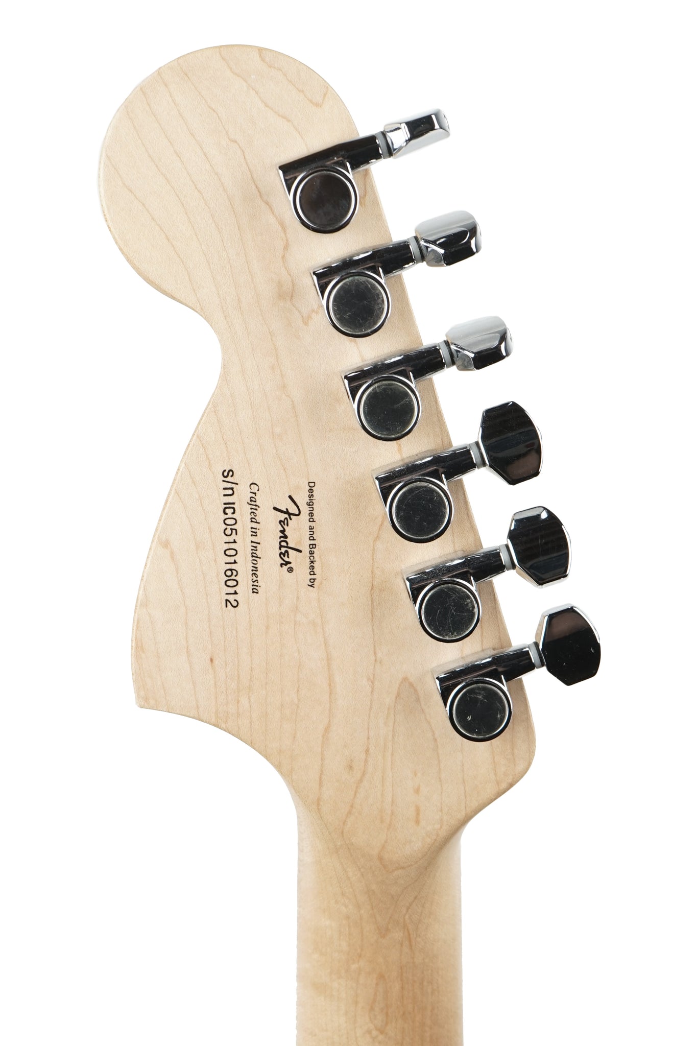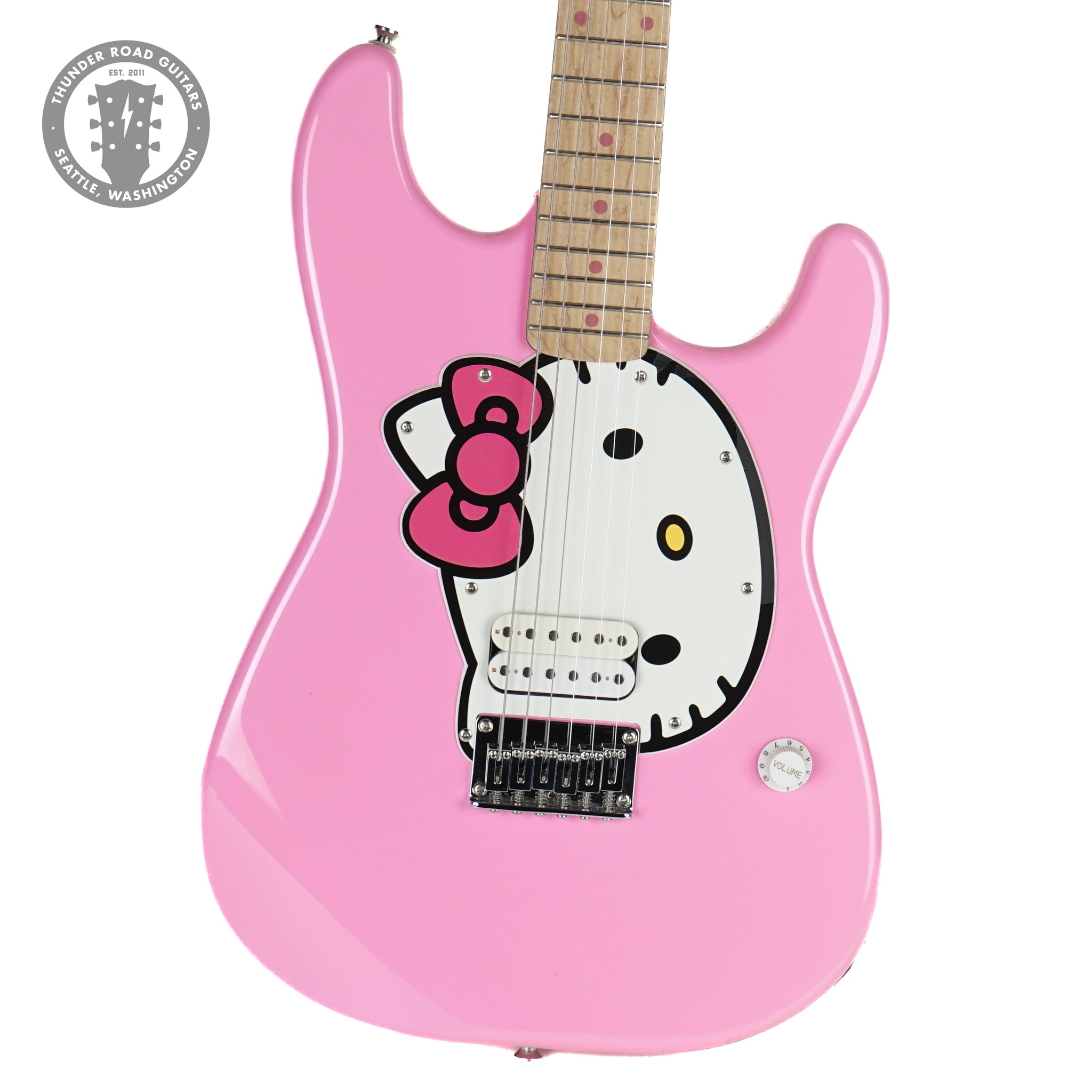 Up for sale is a 2005 Squier Hello Kitty Stratocaster. We love when these come through the shop. This model became super popular in the mid 2000's and are now very sought after . This one comes to us pretty clean with minimal signs of play wear. There just a handful of very minor scratches and it appears as if some of the gloss coating of the black on the kitty pick guard has come off (See in photo) but besides that this one is a ton of fun to play. This one does not come with a case but does come to you with a full pro setup from our in house tech.