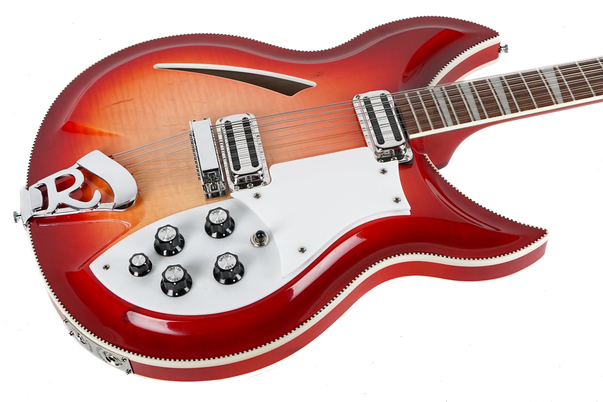 Up for sale is a clean and mean 2019 Rickenbacker 381/12V69 12 String in Fireglo. I've always loved the 381 model with the carved top and back as well as toaster pickups. They visually and sonically are a wonderful instrument and this example is no exception. Overall this example is exceptionally clean showing little signs of wear. Being this model is not currently in production we are thrilled to have this one in the shop. Pro setup in house and comes complete with its original hard case and paperwork. Weight: 8lbs. 6oz.