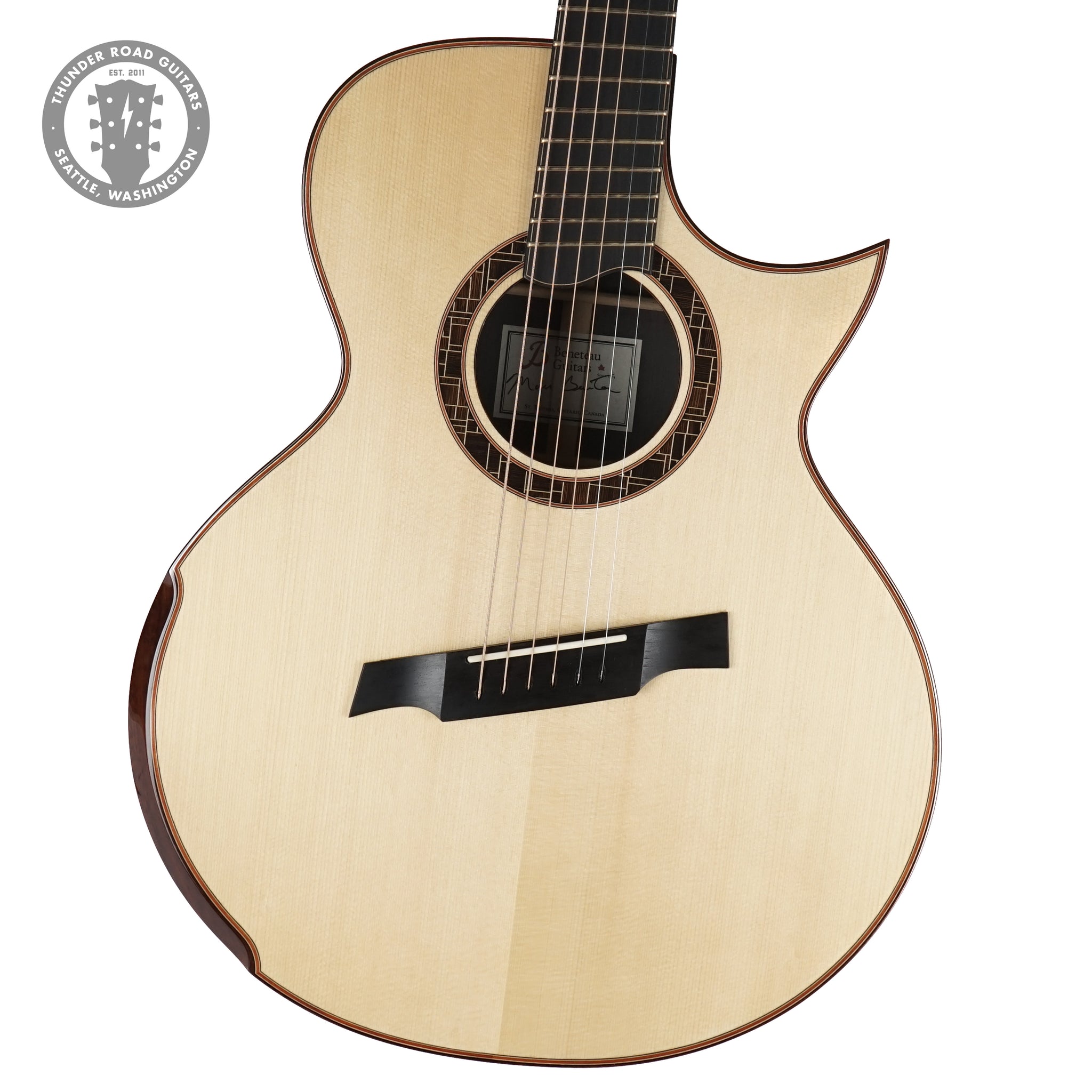 Up for sale is a 2020 Beneteau Fanfret Mini Jumbo in its original Natural finish. It's clear to me that no expense was spared on this one! This is an amazing sounding and wonderful feeling example of one of the best Luthiers in Canadas finest work. This one comes to us from the home of the original owner in very good condition less some signs of use and play wear. There are a few dings of note, one on the top about the size of the tip of a pick. This one is located near the bottom of the instrument on the bass side and is visible in our photos. The back of the body shows some finish swirling that's hard to see unless in the right light. This one is stunning, feels great and is sure to make whomever owns it next a happy player!