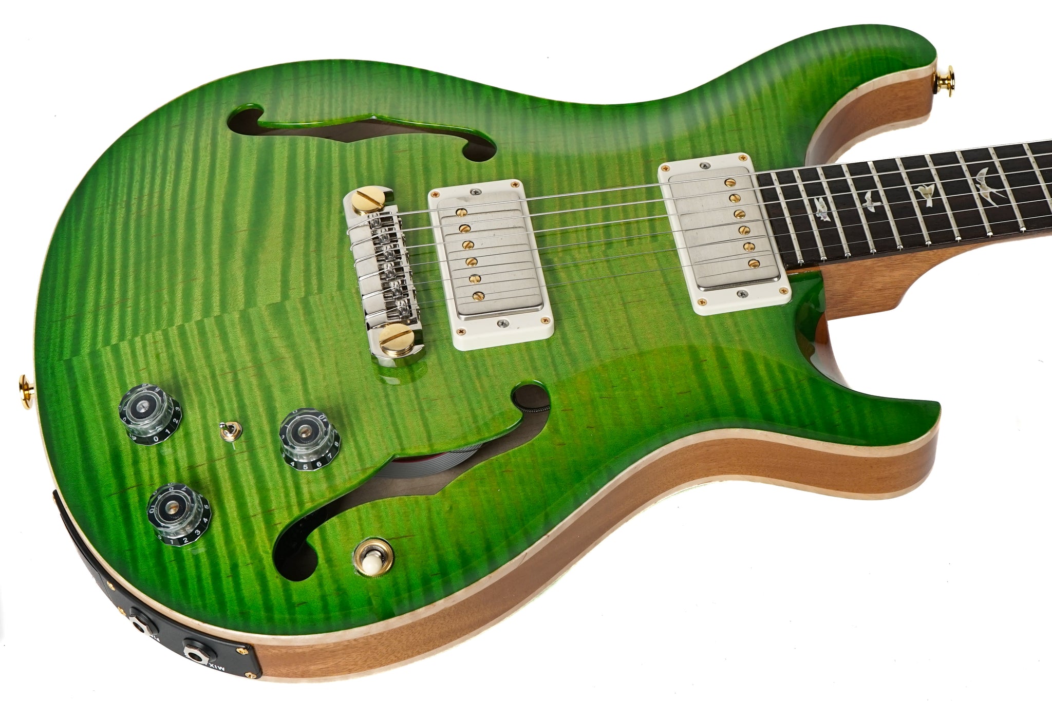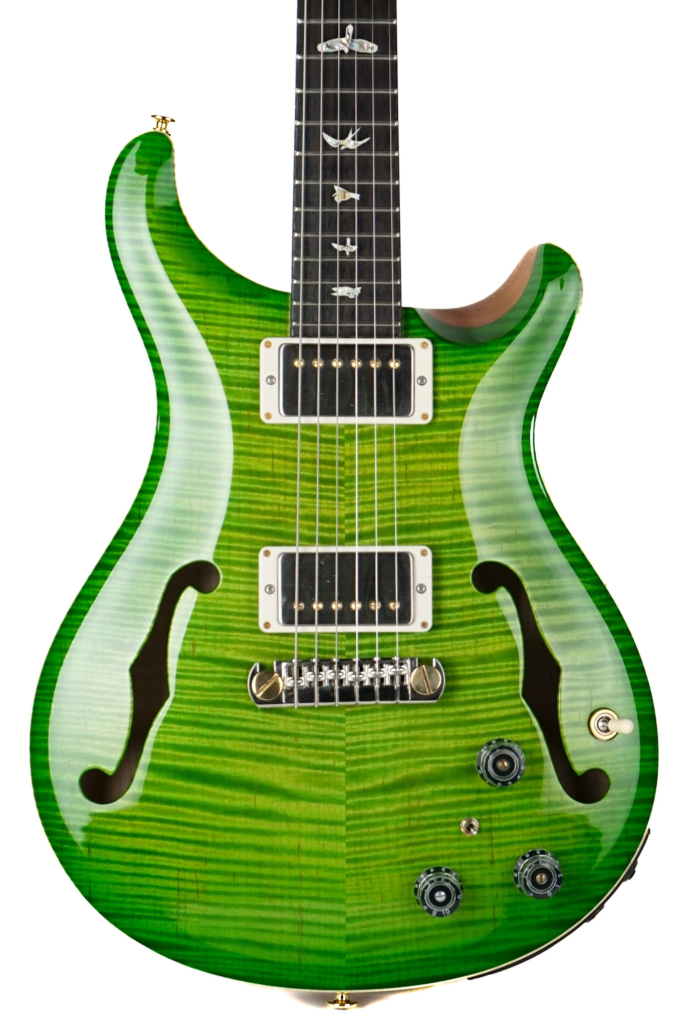 Up for sale is a 2021 PRS Hollowbody II 10 Top in Eriza Verde. This example features a pattern neck profile, stunning 10 top and is just a beautiful example of what the builders at PRS are capable of. Overall this one is exceptionally clean showing little signs of play wear or finish wear. Pro setup in house and comes complete with its original hard case and paperwork. Weight: 5lbs. 10oz.