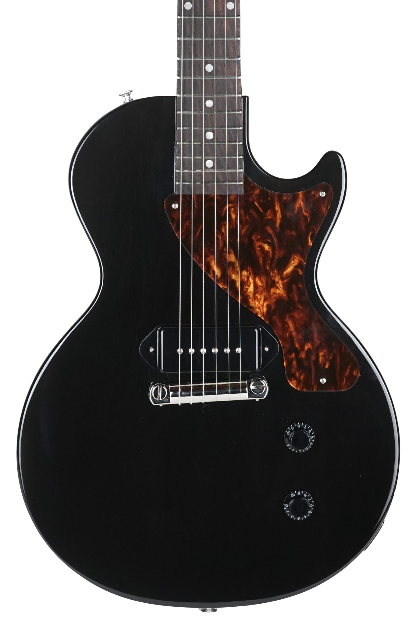 Up for sale is a lightly used 2022 Gibson Billie Joe Armstrong Les Paul Junior in Ebony finish. Cosmetically this one is pretty good less a bit of micro scratching in the finish and a couple of minor dings. Most notable is a ding on the treble side of the guitar near the output jack. This one comes with its original pink Gibson molded case with leopard print inside and a fully professional setup from our in house tech. Weight: 6lbs. 9oz.