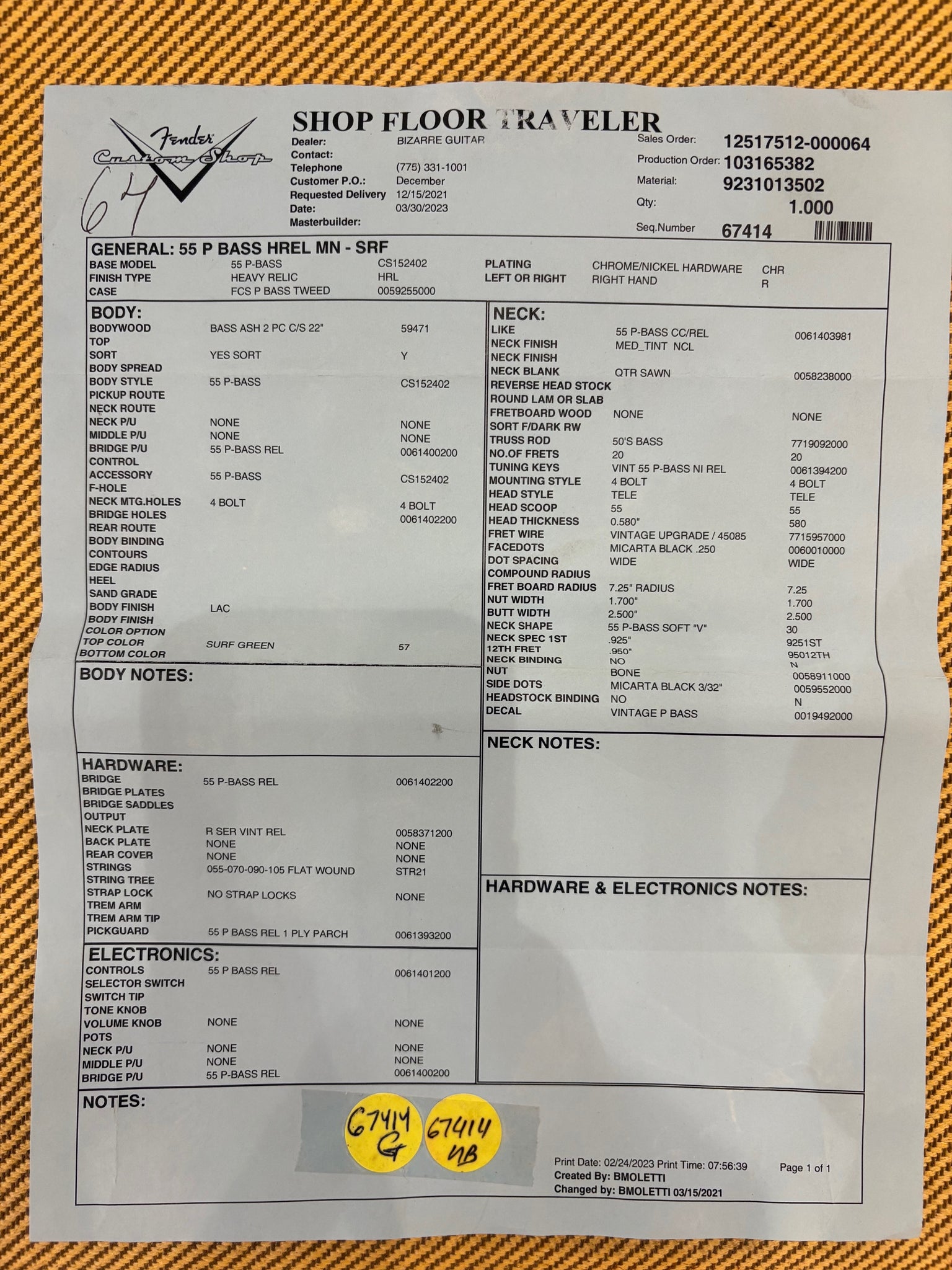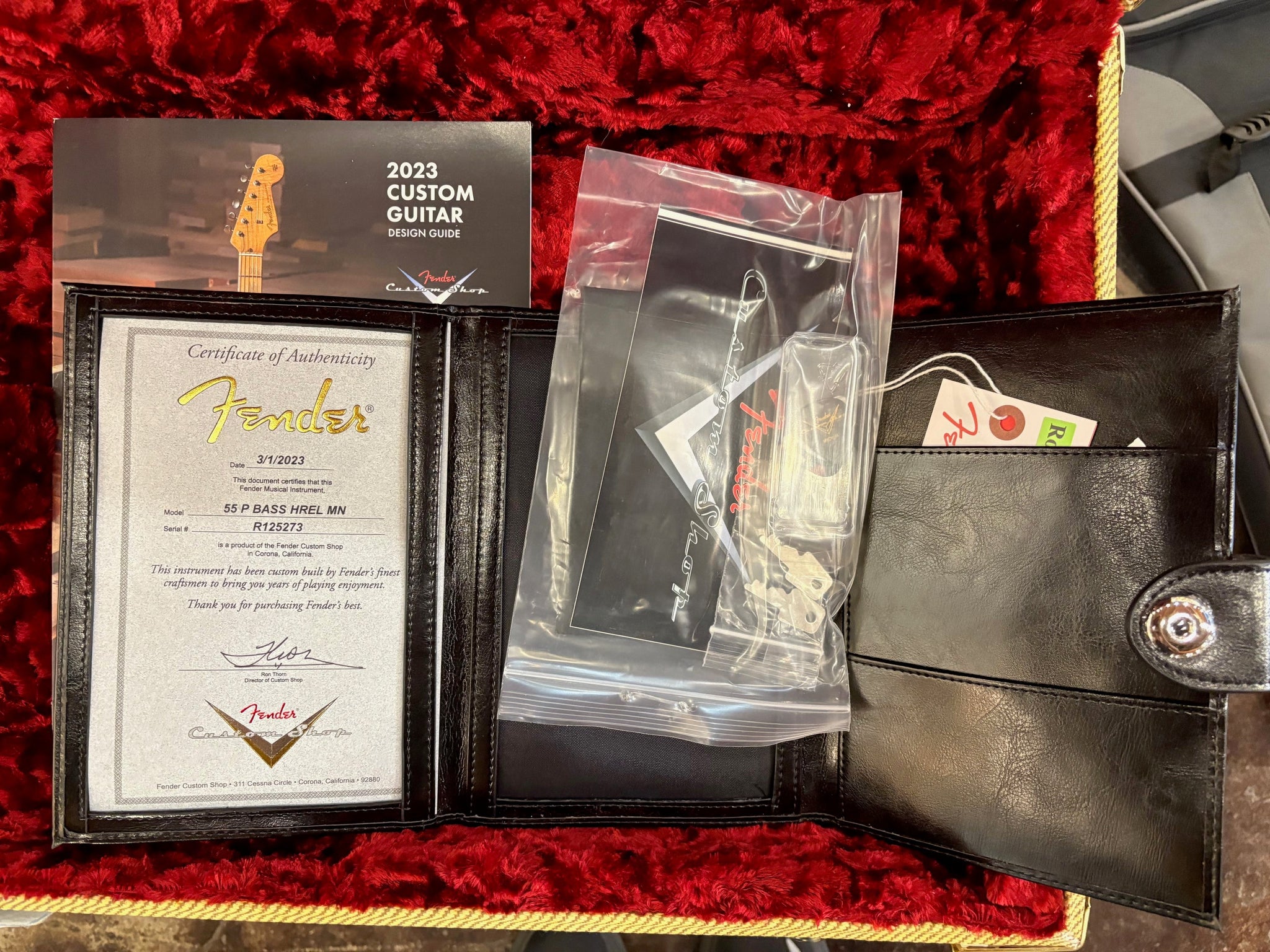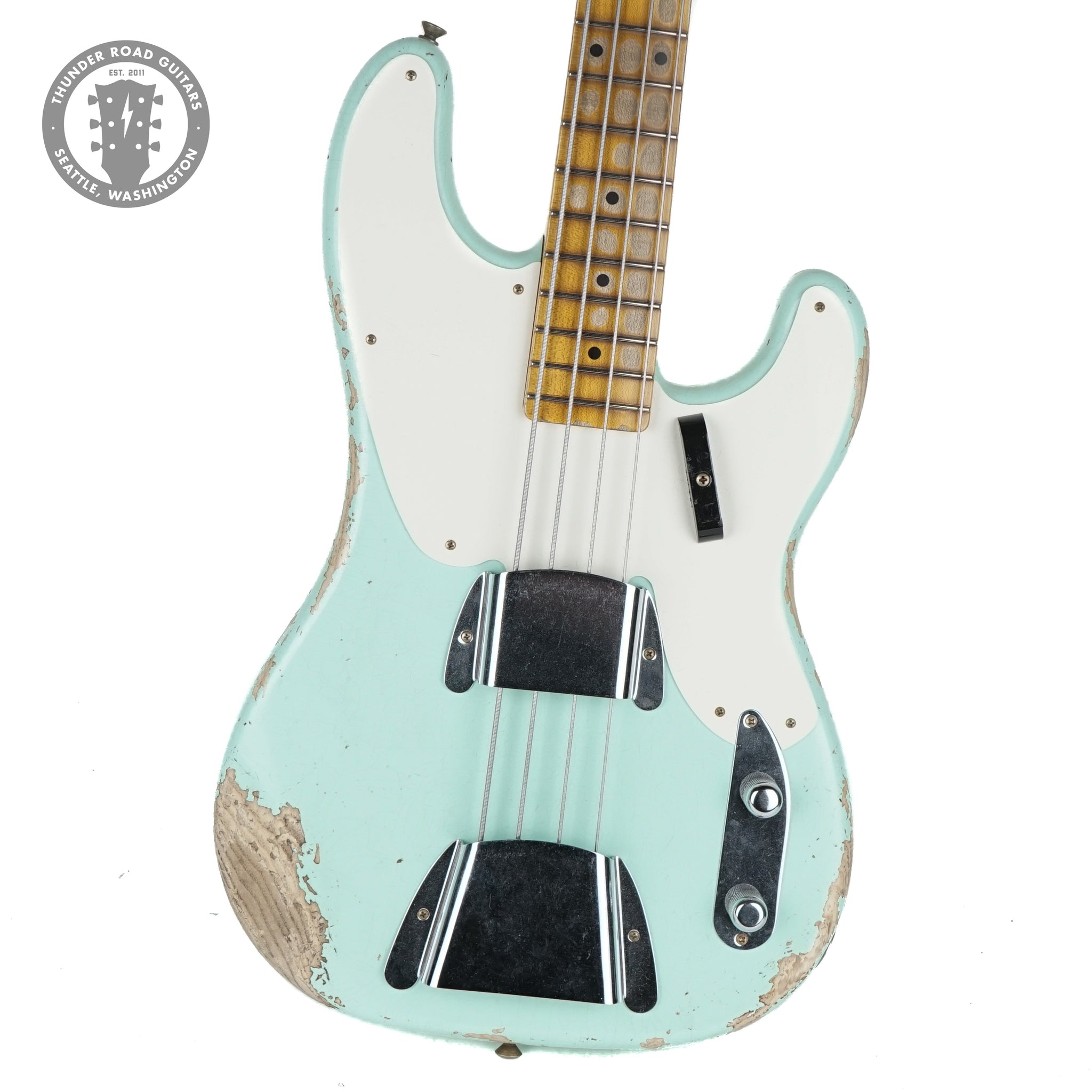 Up for sale is a killer 2023 Fender Custom Shop '55 Precision Bass Heavy Relic in Surf Green. We are an authorized Fender Custom Shop Showcase Dealer and have one of the largest selections of Fender Custom Shop instruments in the Pacific Northwest. This example is in excellent / near mint condition and includes its original paperwork, COA and tweed hard case (case has a small bulge on the very bottom). Pro setup in house! For a full list of specs please see the build sheet in our photos. Weight: 8lbs. 11oz.