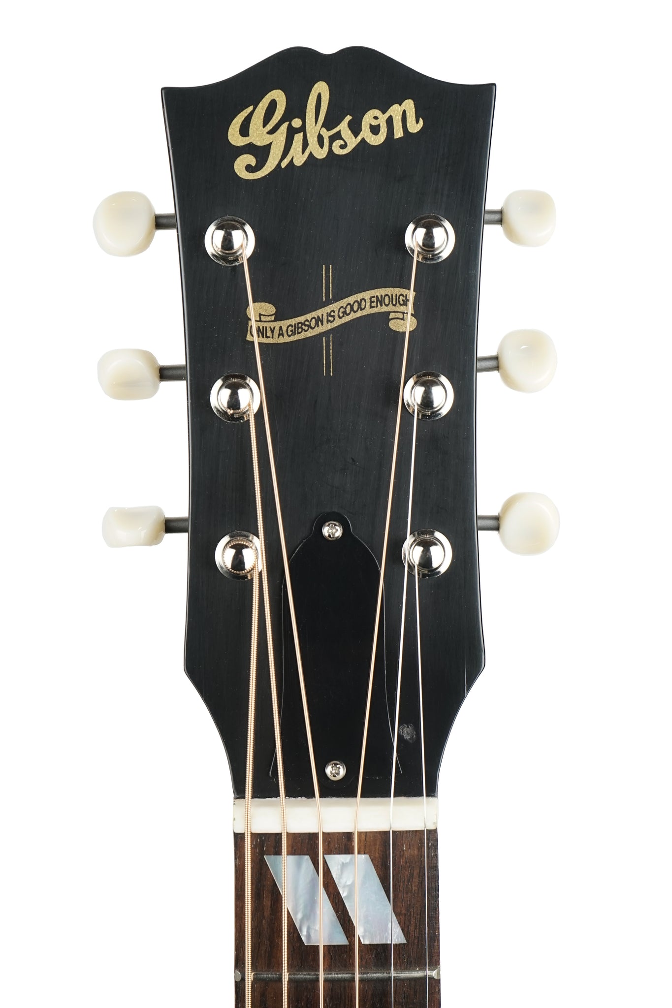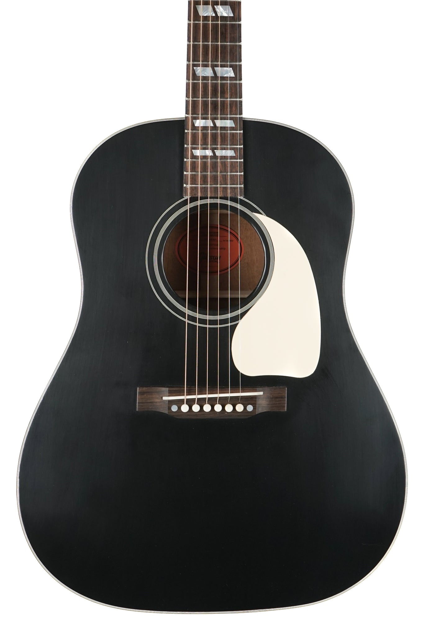 Up for sale in the shop is 2024 Gibson Custom Shop Southern Jumbo Thunder Road Guitars Stinger Series in Ebony. We spec'd these out and totally love them. This one came back to us from its previous owner with a small ding on the front of the headstock near the truss rod cover and a slightly crooked tuning key on the B string. There are very faint signs of play wear but this guitar has all the vibe including a stinger on the back of the headstock.