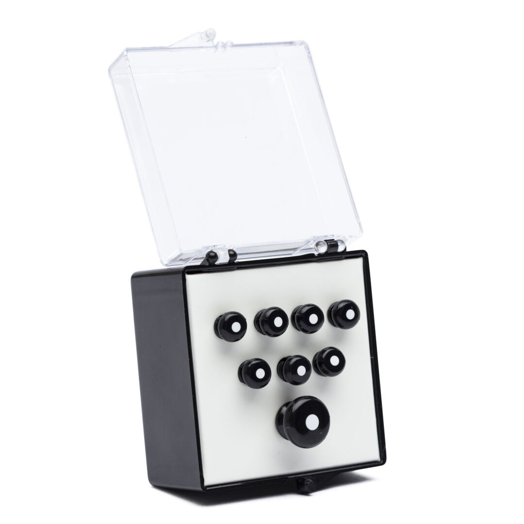 These black bridge and endpins with white accents are sure to hold your guitar string in place while not affecting your tone.