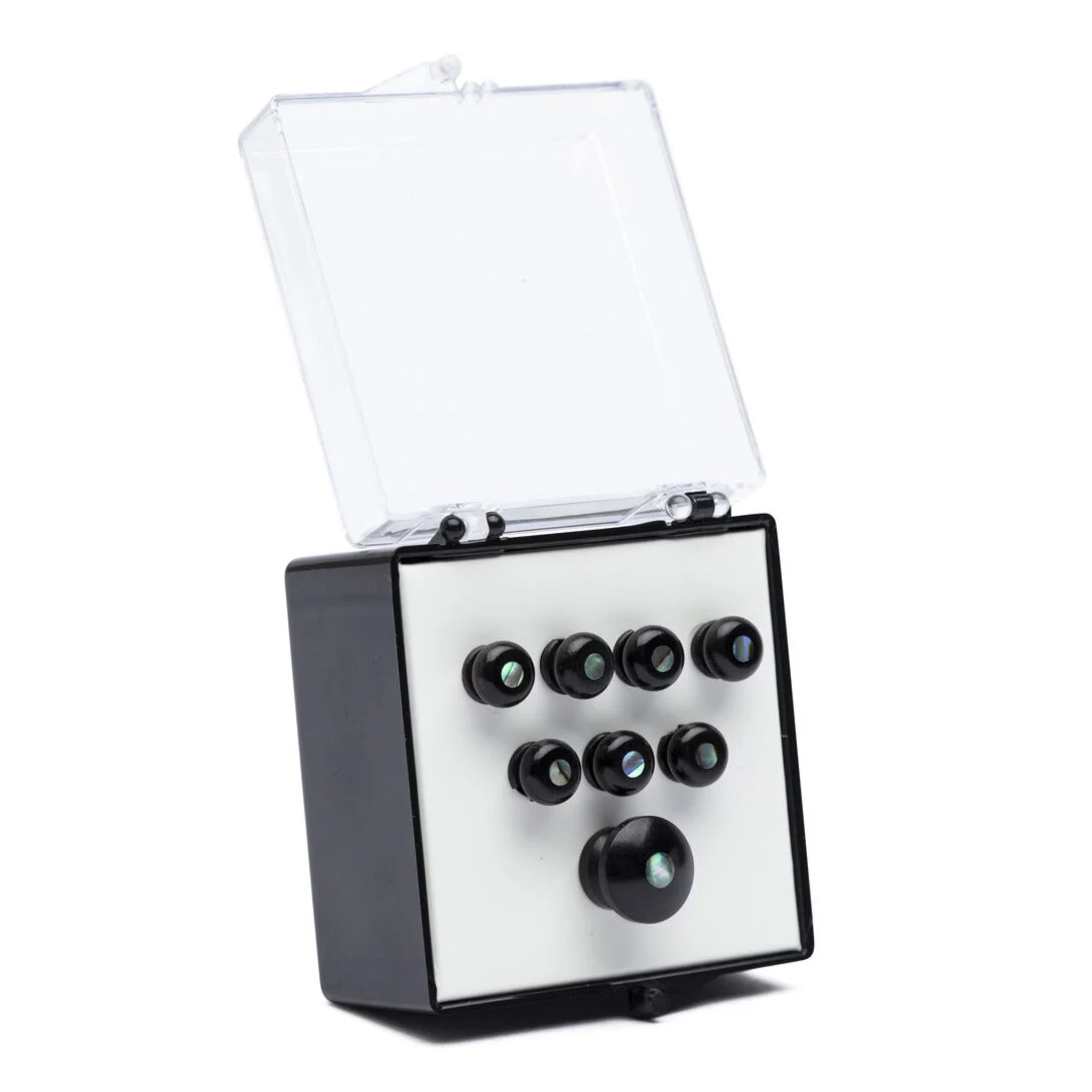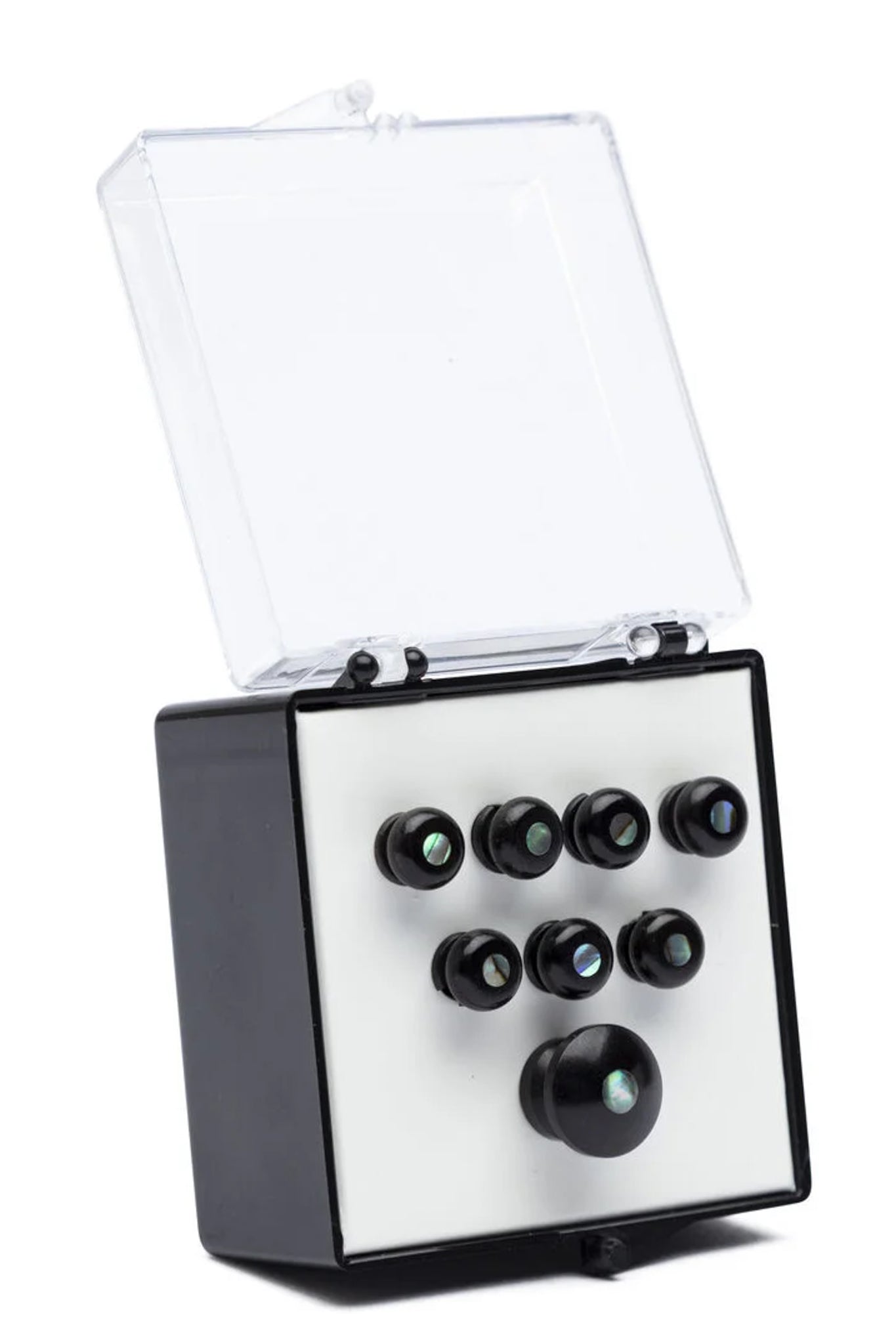 These ebony and pearl bridge and endpins are sure to hold your guitar string in place while not affecting your tone.
