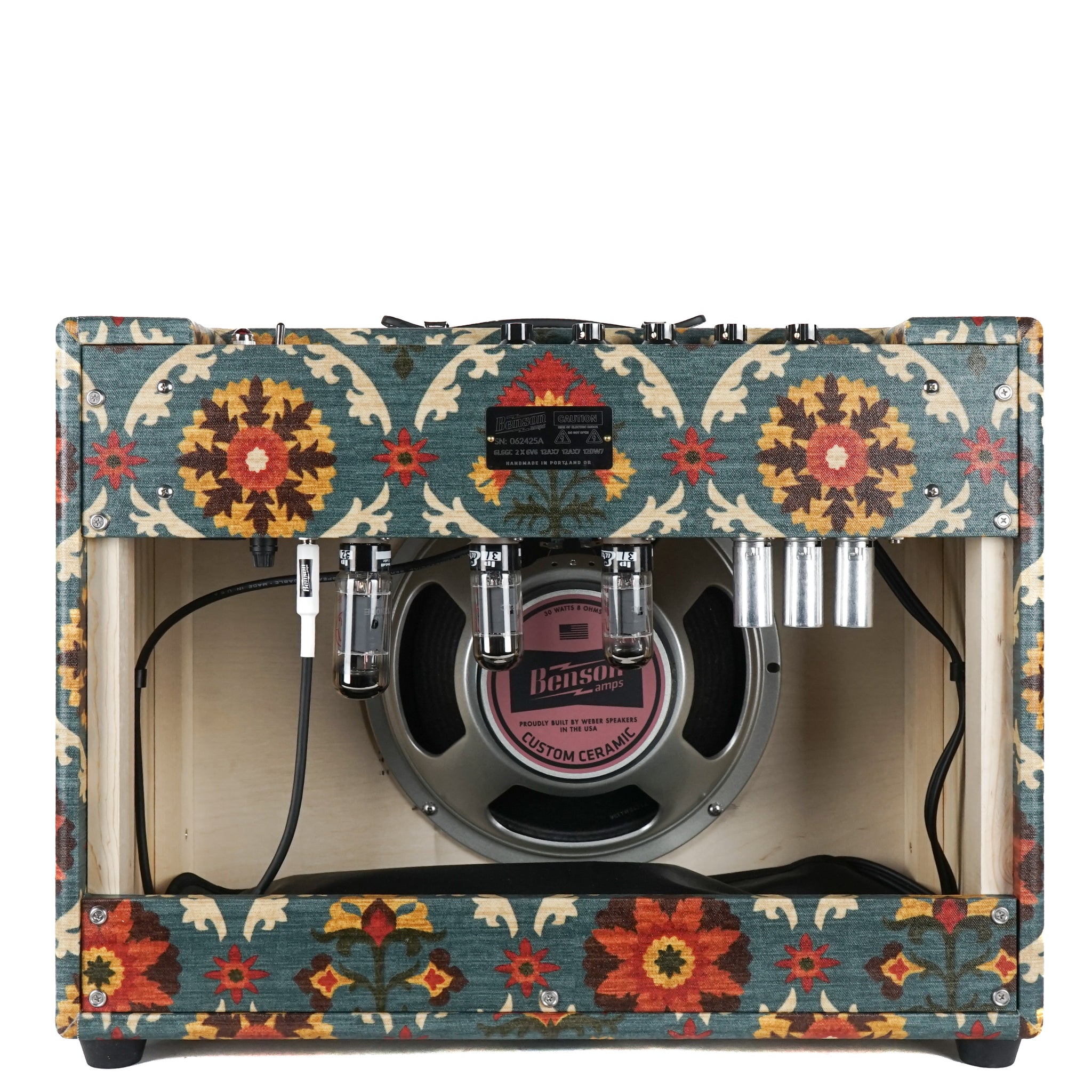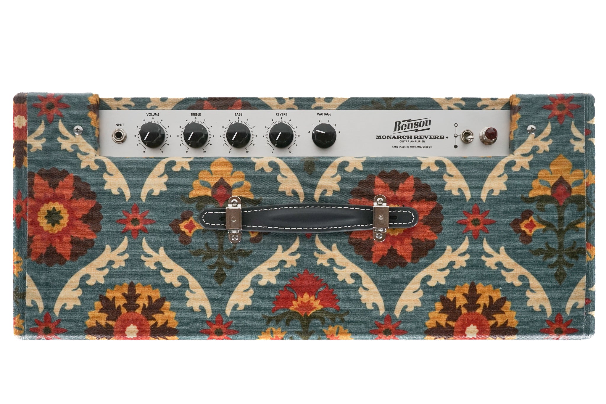 Up for sale is a Brand New Benson Monarch Reverb Plus Combo Amp in Aunt Gertie with a wheat grill. These amps are stunning! There is nothing like these. We are an authorized Benson dealer and this will ship to you with a full manufacturers warranty.