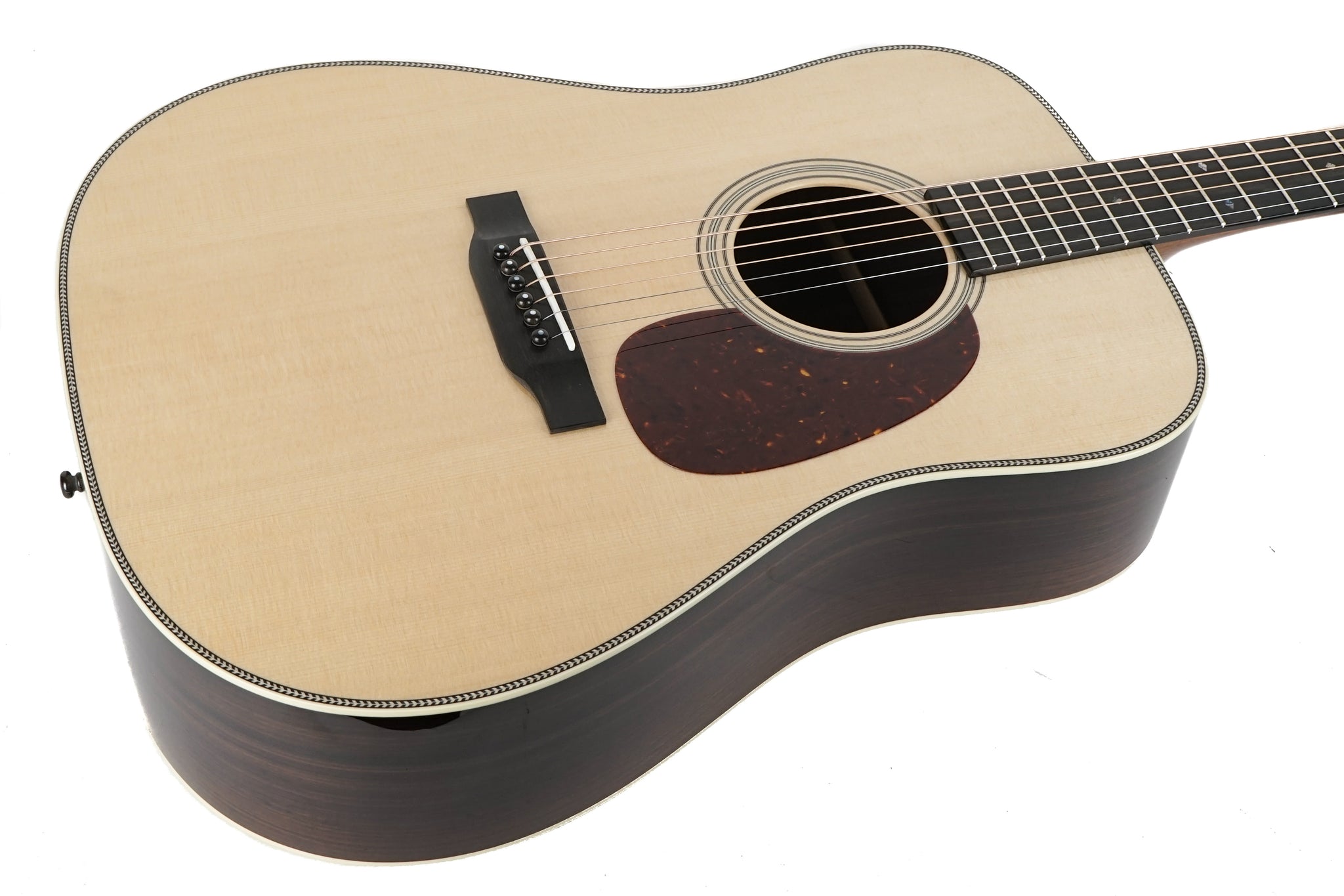 The D2H features East Indian rosewood back and sides with ivoroid body binding and butt wedge, herringbone top purfling, a “zipper” backstrip, diamonds and squares fingerboard inlays, and a more intricate 2-style rosette.