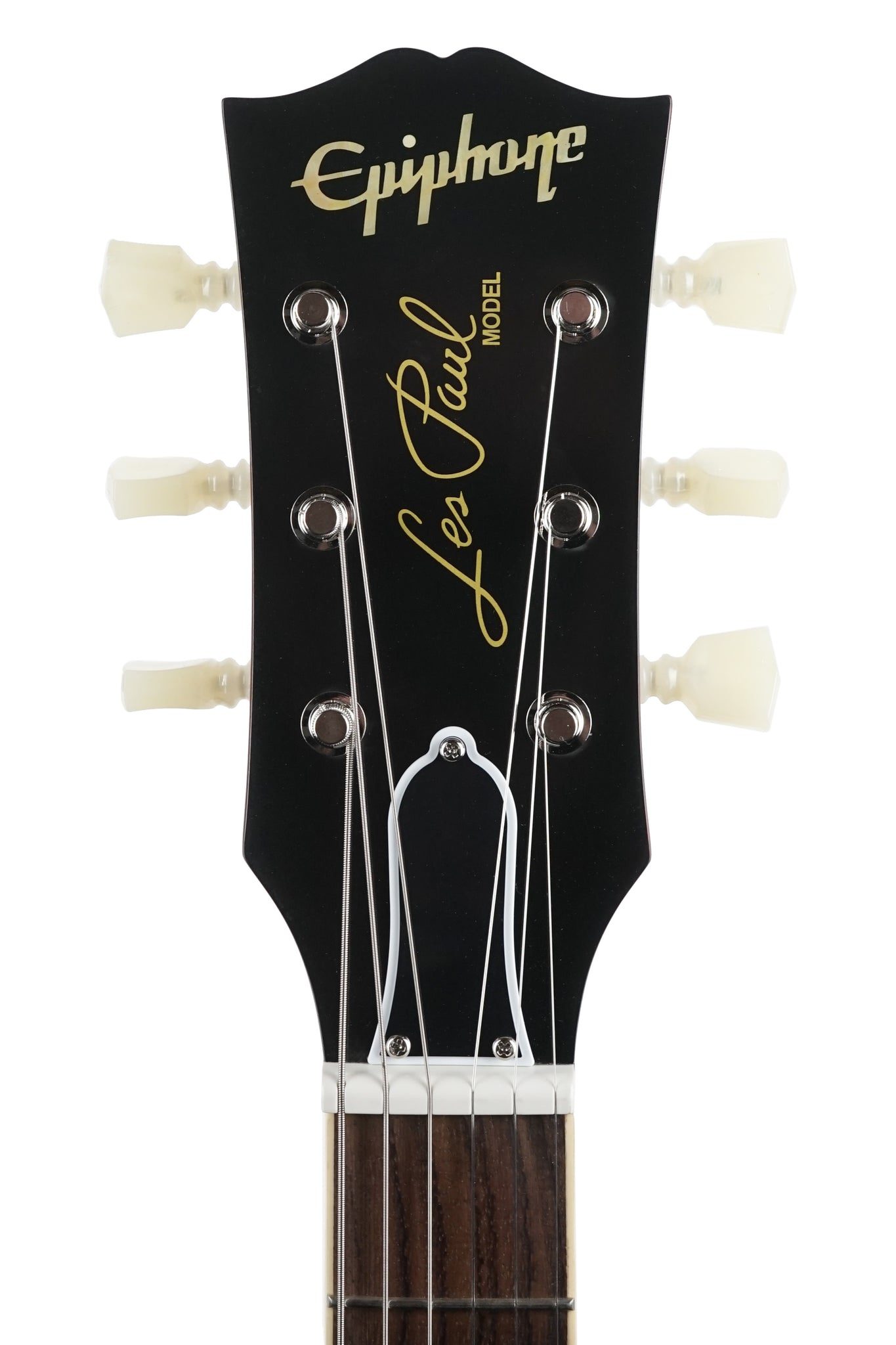 The 1960 Gibson Les Paul™ Standard is one of the world’s most coveted vintage guitars. It has been embraced by such luminaries as Eric Clapton, Paul McCartney, and Joe Walsh. The 1960 Les Paul Standard is very similar to the famous 1959 model year that preceded it, but with a few changes, most notably, a thinner and faster-playing SlimTaper™ neck profile that many players prefer over the somewhat beefier 1959 Les Paul Standard neck profile. Now, Epiphone is proud to introduce the Epiphone 1960 Les Paul Standard Reissue, a beautiful recreation of those vintage 1960 Les Paul Standard models. Made in partnership with Gibson Custom, the Epiphone Les Paul Standard 1960 Reissue delivers vintage Les Paul looks and performance at an accessible price. All of the classic appointments the 1960 Les Paul Standard model is known and loved for are present here, including a one-piece mahogany neck with a long neck tenon for increased stability and sustain, a comfortable, fast-playing SlimTaper™ profile, and a bound rosewood fretboard. It also features mother-of-pearl trapezoid fretboard inlays, an aged mother-of-pearl Epiphone headstock logo, and the words “Les Paul Model” silkscreened in gold on the Gibson-style “open book” headstock. Even the side dot position markers are the same size as on vintage 1960 Les Paul Standard models and are placed in historically accurate locations. The genuine mahogany body features a carved maple cap that is topped with a beautiful AAA flamed maple veneer. The electronics are equally impressive, with two USA Gibson Custombucker humbucking pickups with Alnico 3 magnets that are hand-wired to CTS® potentiometers, Bumblebee paper-in-oil capacitors, and a Switchcraft® pickup selector toggle switch and output jack. The Vintage Gloss finish gives the guitar a vintage appearance without looking overly aged and is nicely complimented by the nickel hardware, including the Epiphone Deluxe “Double Ring” Keystone button tuners. A Brown hardshell case with Inspired by Gibson Custom graphics and a pink plush-lined interior is also included. This is the perfect Les Paul for players who love the vintage appeal of the classic 1959 Les Paul Standard but who want a more comfortable neck profile.