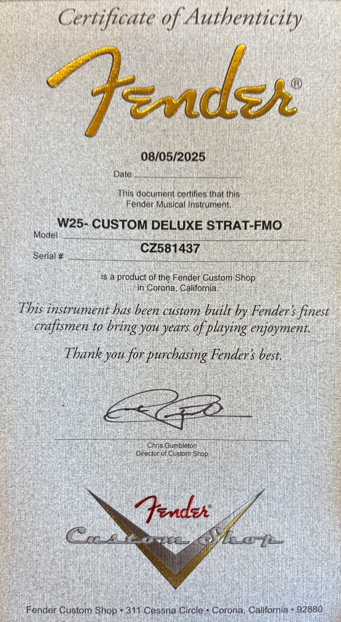 Up for sale is a New Fender Custom Shop Custom Deluxe Stratocaster NOS in Fire Mist Orange. This instrument is marked B-Stock due to a finish ding located on the bass side horn. Otherwise this instrument is as new. We are a Fender Custom Shop Showcase Dealer and have one of the largest selections of Fender Custom Shop instruments in the Pacific Northwest. Stop by and see us! Pro setup in house and comes complete with its original hard case and paperwork.
