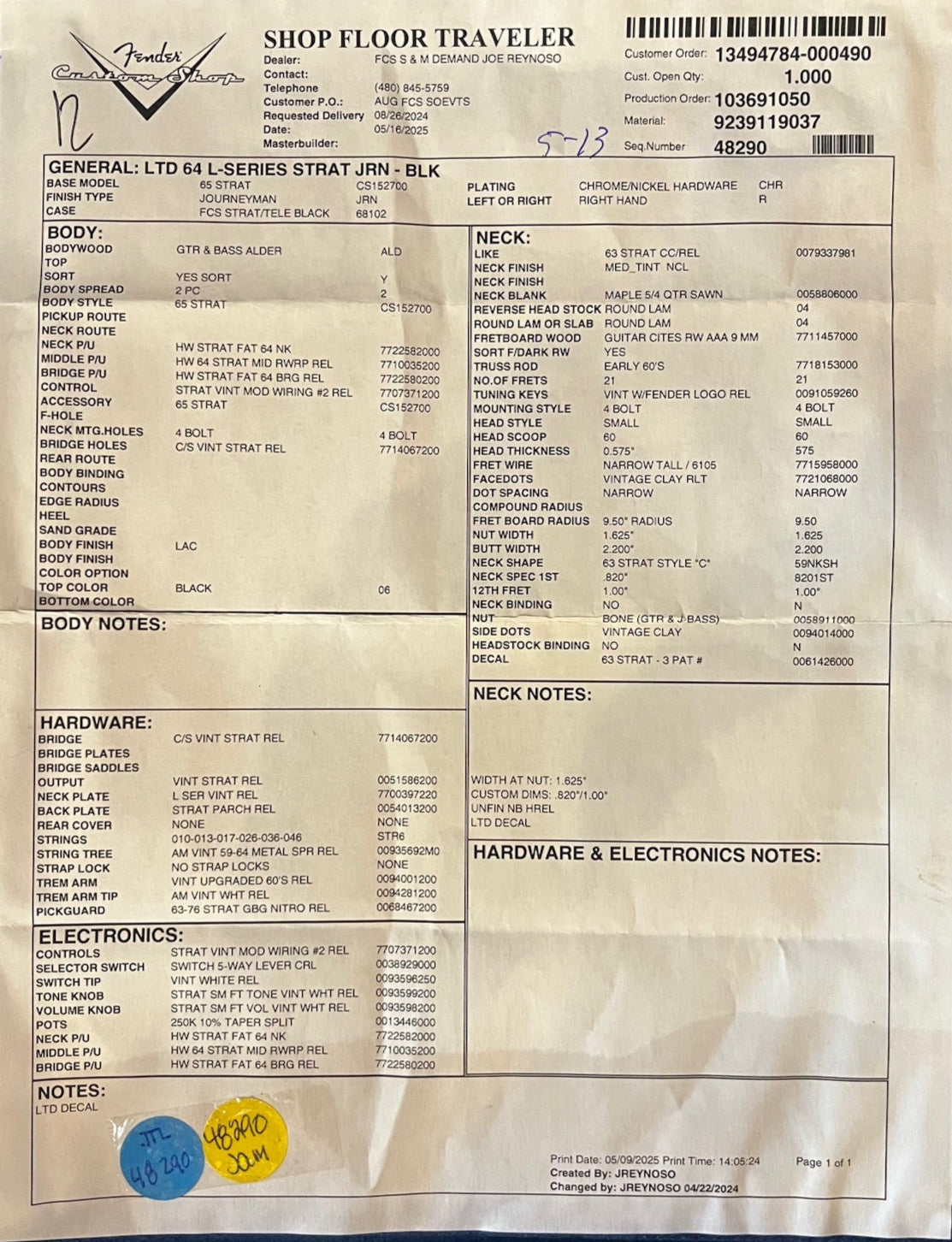 Up for sale is a New Fender Custom Shop 64 L-Series Stratocaster Journeyman Relic in Black. We are an authorized Fender Custom Shop Showcase Dealer and have one of the largest selections of Fender Custom Shop in the Pacific Northwest. Stop by and see us! For a full list of of specs please see the build sheet photo in our ad.