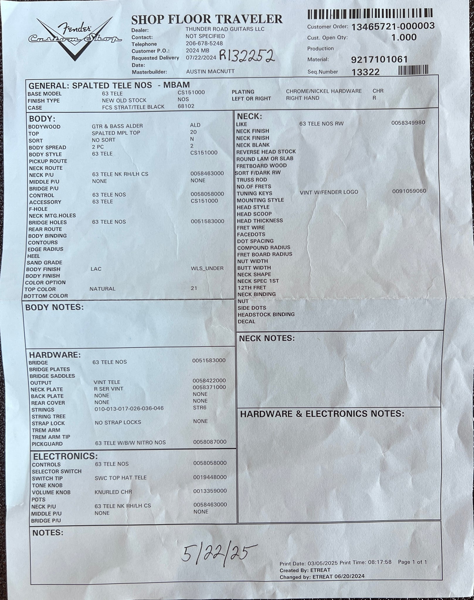 New Fender Custom Shop Masterbuilt Austin MacNutt Spalted Telecaster
