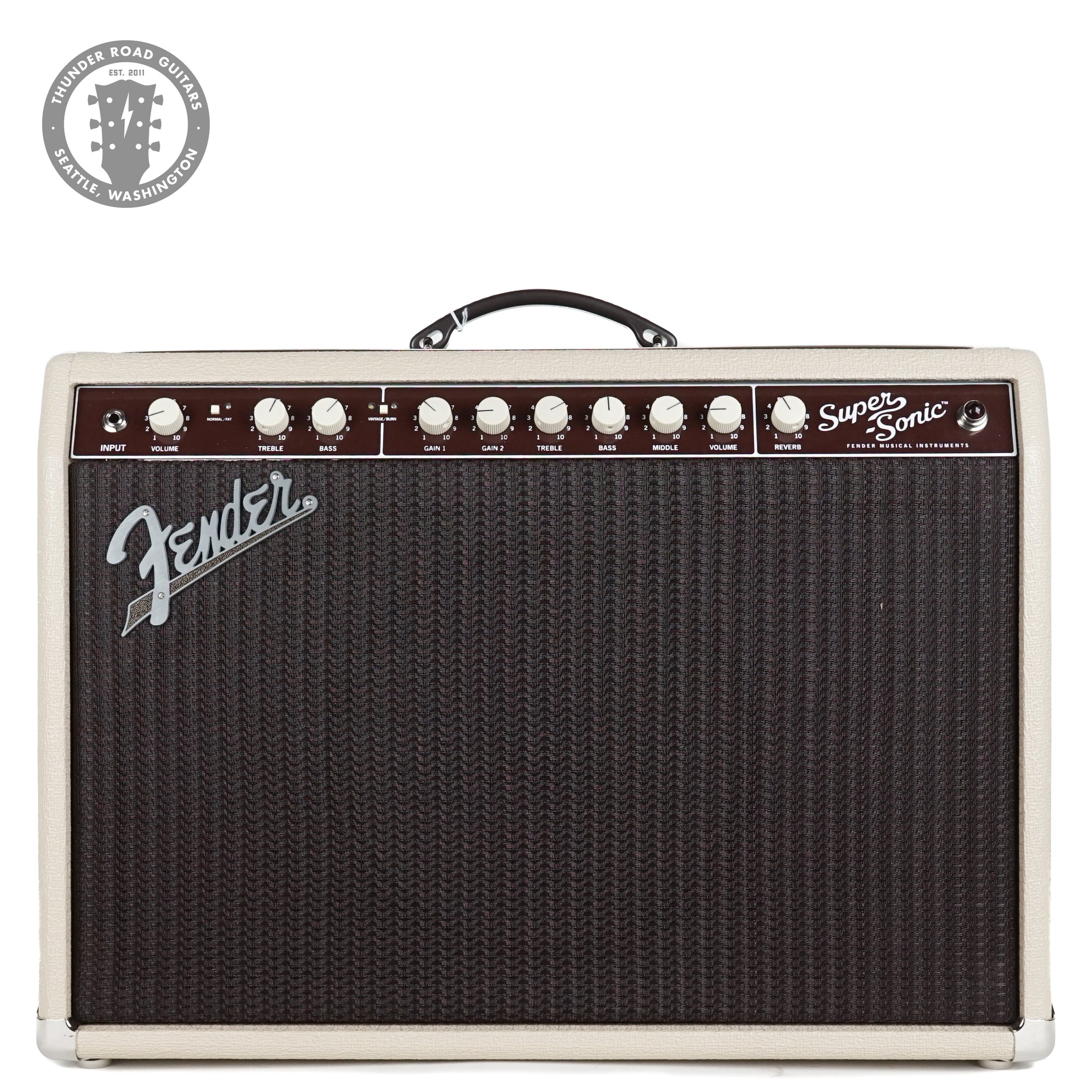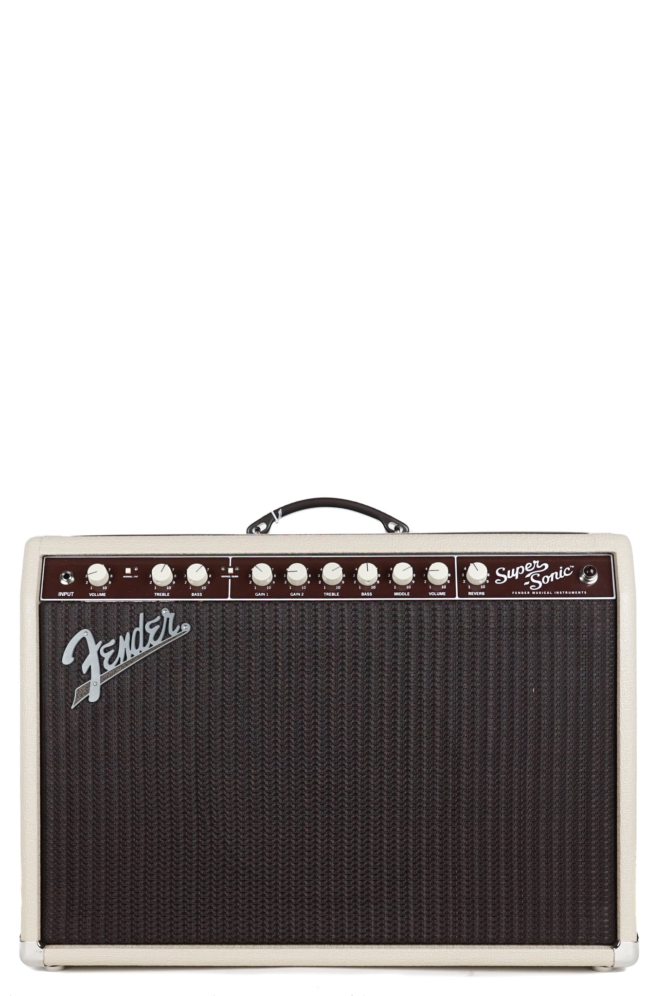 Super-Sonic™ amplifiers are the favorite tool of pro guitarists in many different musical genres who love to create glorious Fender® clean tones and expressive modern high-gain tones with one no-nonsense tube amp. The Super-Sonic 22 Combo delivers this versatility with the organic feel and moderate output power of the legendary Deluxe Reverb® amp, perfect for most stage and studio applications. The vintage channel delivers pure, unmistakable Fender tone, and the awesome burn channel ignites musical inspiration with overdrive flavors ranging from bluesy to flame-throwing. And while the Super-Sonic 22 is capable of heavily saturated tube distortion and sustain, it never masks the tonal character of your guitar. Available in two classic cosmetic treatments - Black/Silver and 1961-style Blonde/Oxblood, both with ivory "radio" knobs and flowing 1960s script logo.