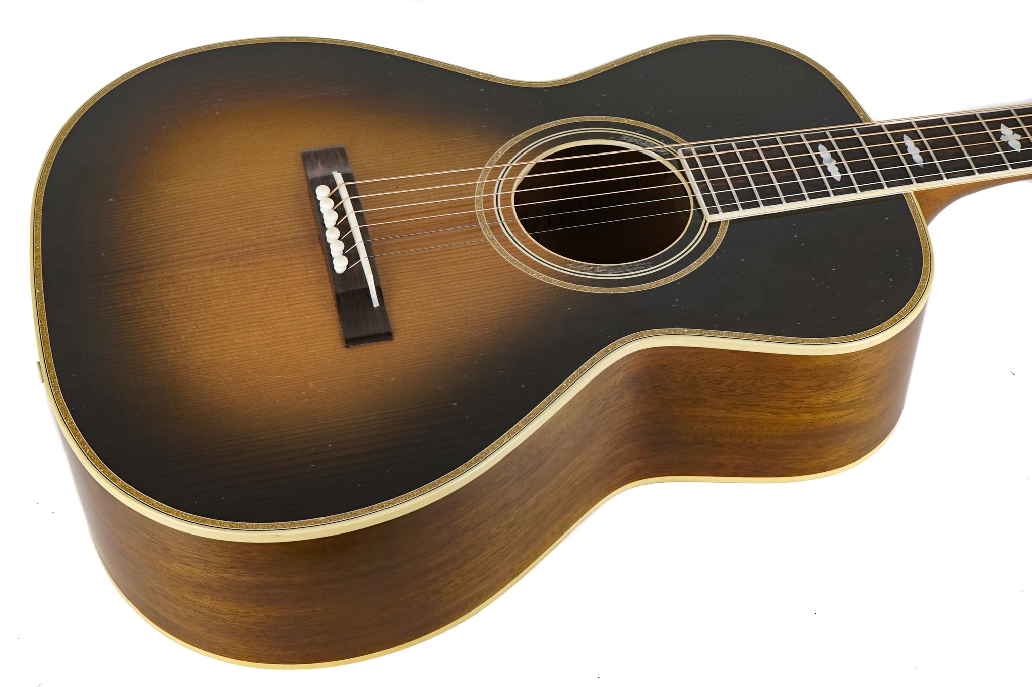 Nick Lucas was one of the most popular American entertainers in the world in the 1920s. Known as The Crooning Troubadour, he performed on the vaudeville circuit, played solo and also played jazz with big bands, played command performances for European royalty, and was among the very first musicians to play and record guitar solos. He was also one of the first radio stars to perform with a guitar, and his recordings influenced the likes of Merle Travis. Today, his artistry is recognized as contributing to the popularity of the guitar, which is perfect for vocal accompaniment and an excellent solo instrument. Frank Campbell, Gibson’s General Sales Manager at the time, approached Lucas and tried to convince him to switch to playing Gibson guitars. Lucas said he would–if Gibson would build one to his specifications, and Gibson readily agreed. The result was the Nick Lucas Special, which was introduced in 1926 and was Gibson’s first artist signature model. One of the things that Lucas requested was a compact but deeper body for better bass response. The Nick Lucas Special went through a range of variations in body woods, bridges, and other features, but they all had a deeper body in common, which contributes to the model’s unique voice, which is rich and surprisingly full and complex for a small-bodied instrument.