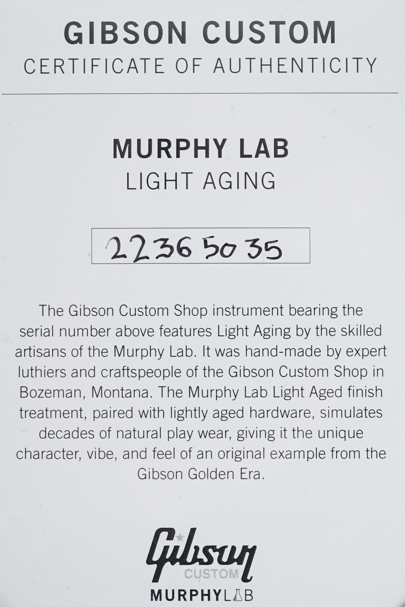 Up for sale is a new Gibson Custom 1929 Nick Lucas Special Murphy Lab Light Aged in Argentine Grey. Weight: 3lbs. 8oz.