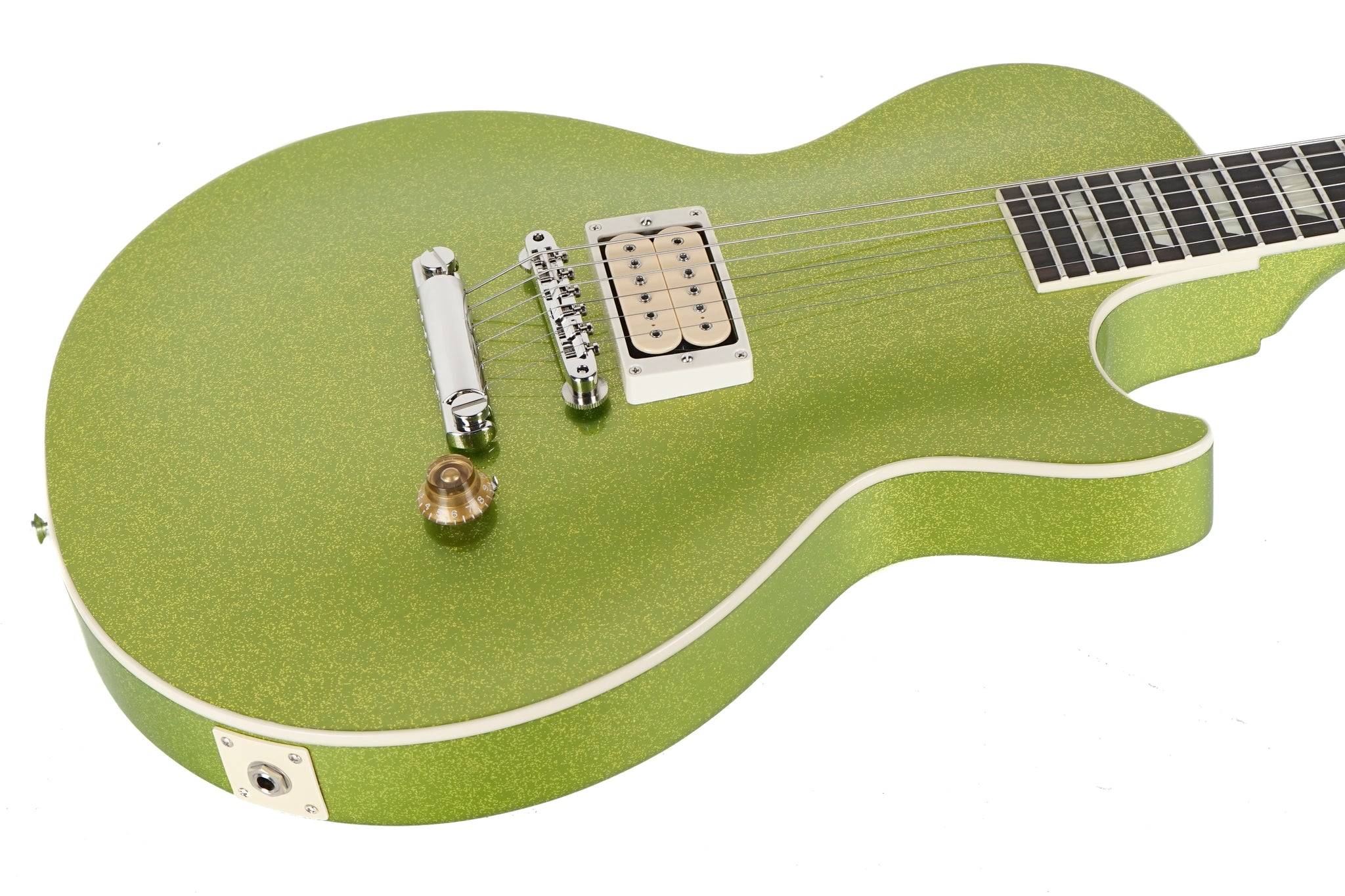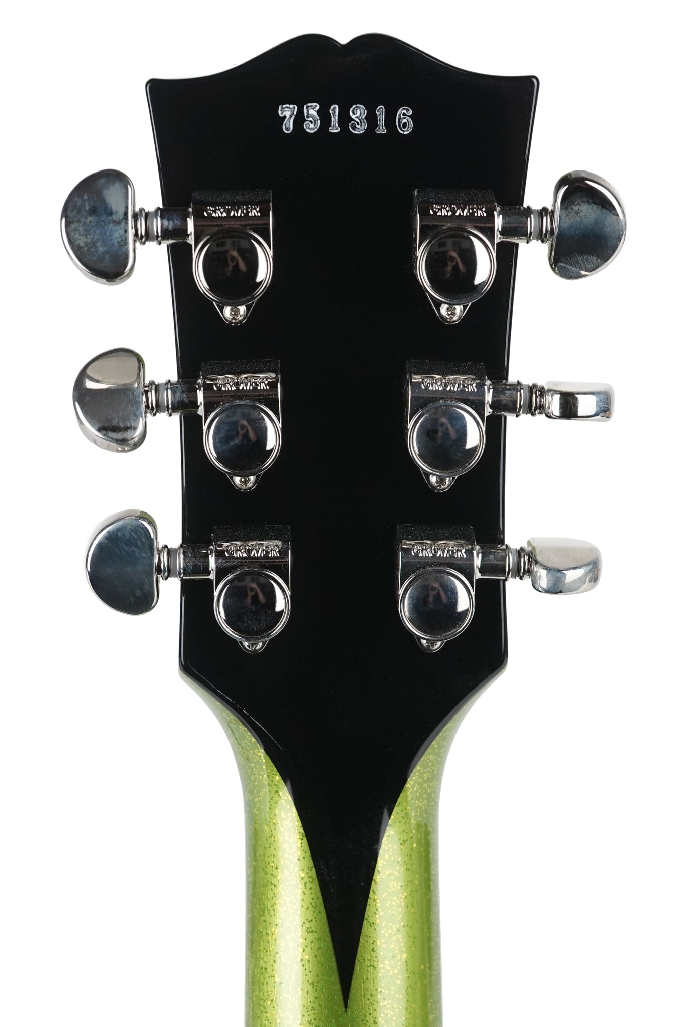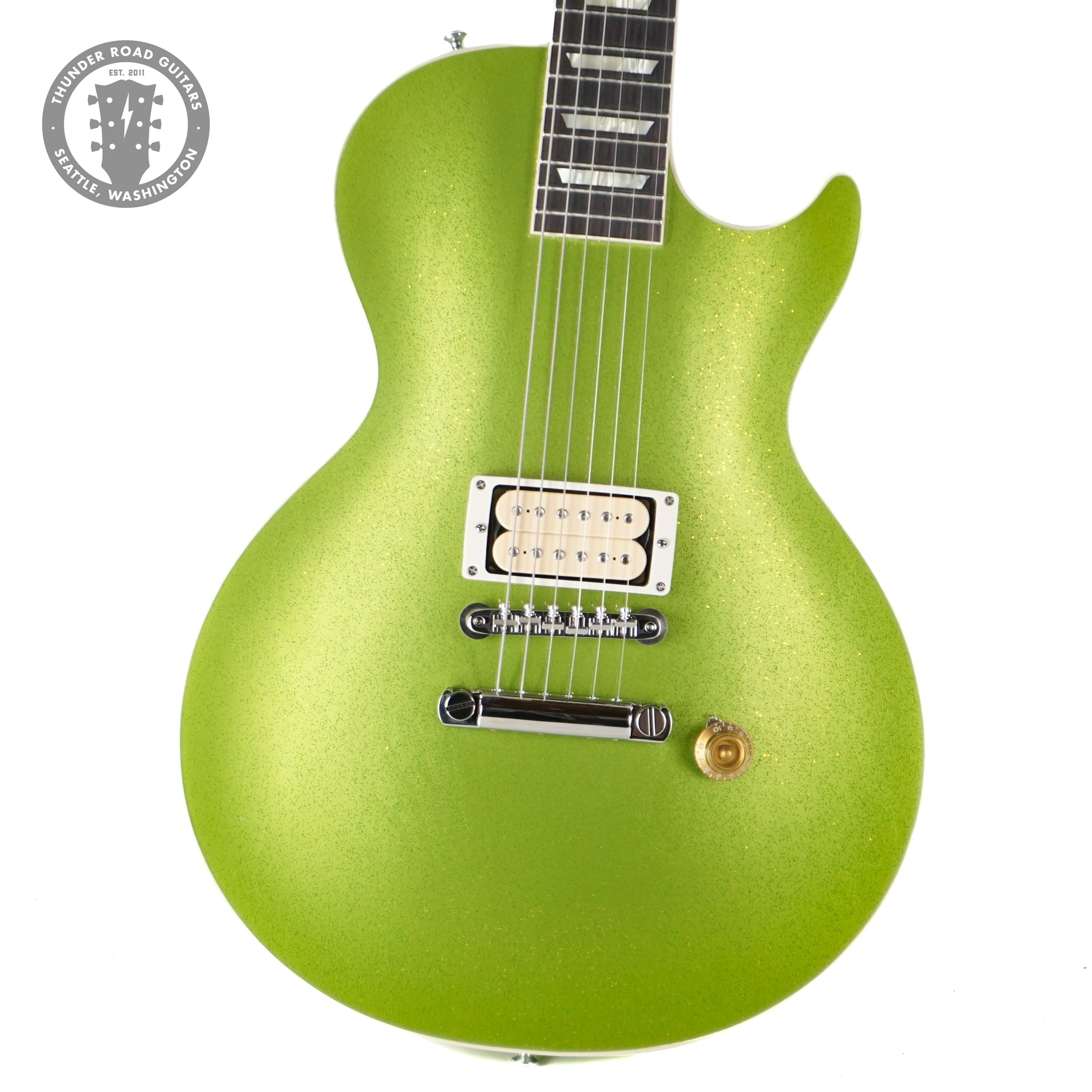 In Collaboration with our friends at Gibson Custom we are proud to present The New Gibson Custom 1957 TRG Stinger Series Les Paul Standard in VOS Gecko Green Sparkle. This one is all gas and no brakes. These guitars feature a single Dimarzio Super Distortion bridge pickup and one volume knob, an Ebony Stinger, and one of the most slammin' sick sparkle finishes this side of the Mississippi. Don't miss out, there's only 6 of these in the world!