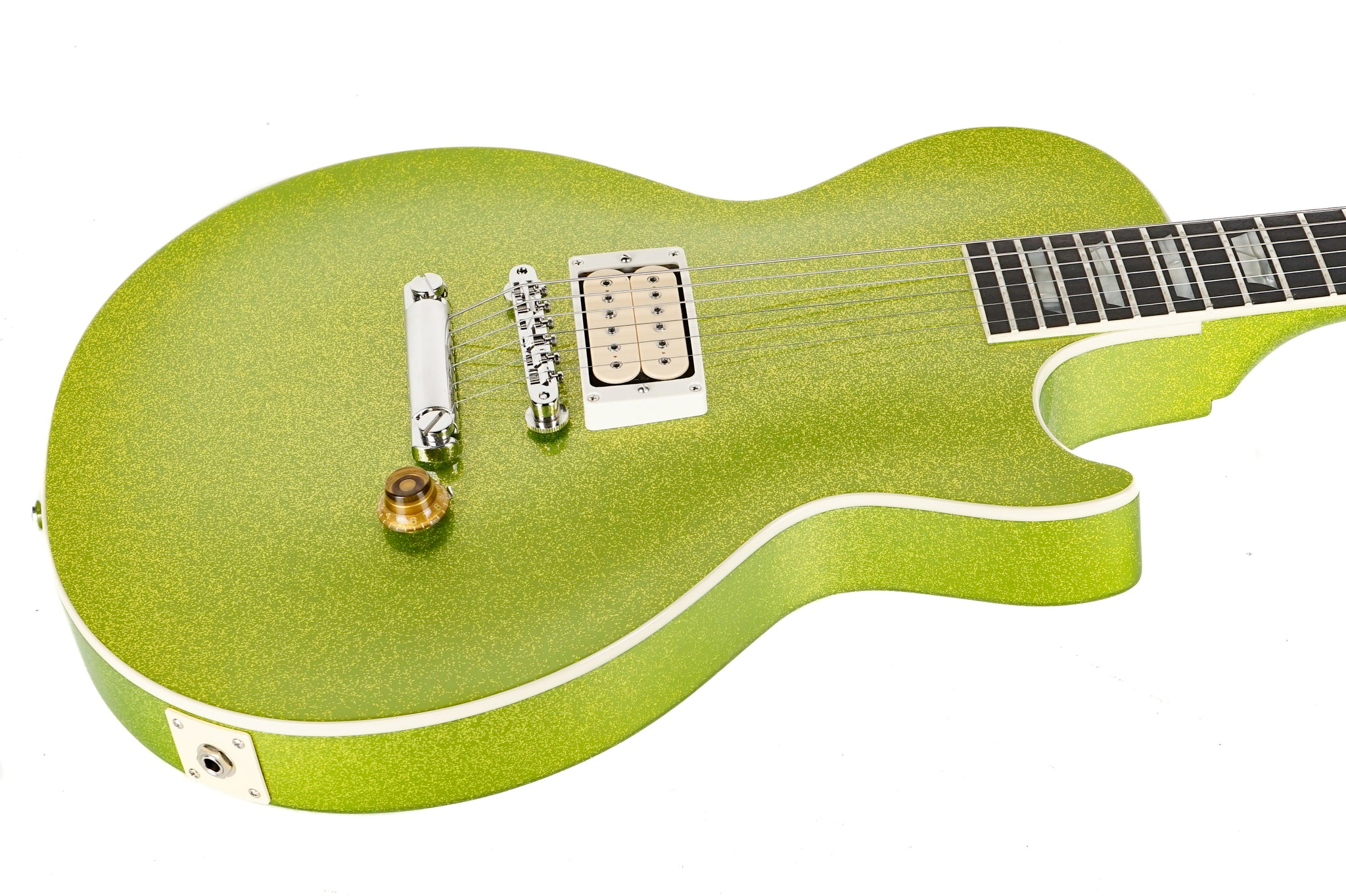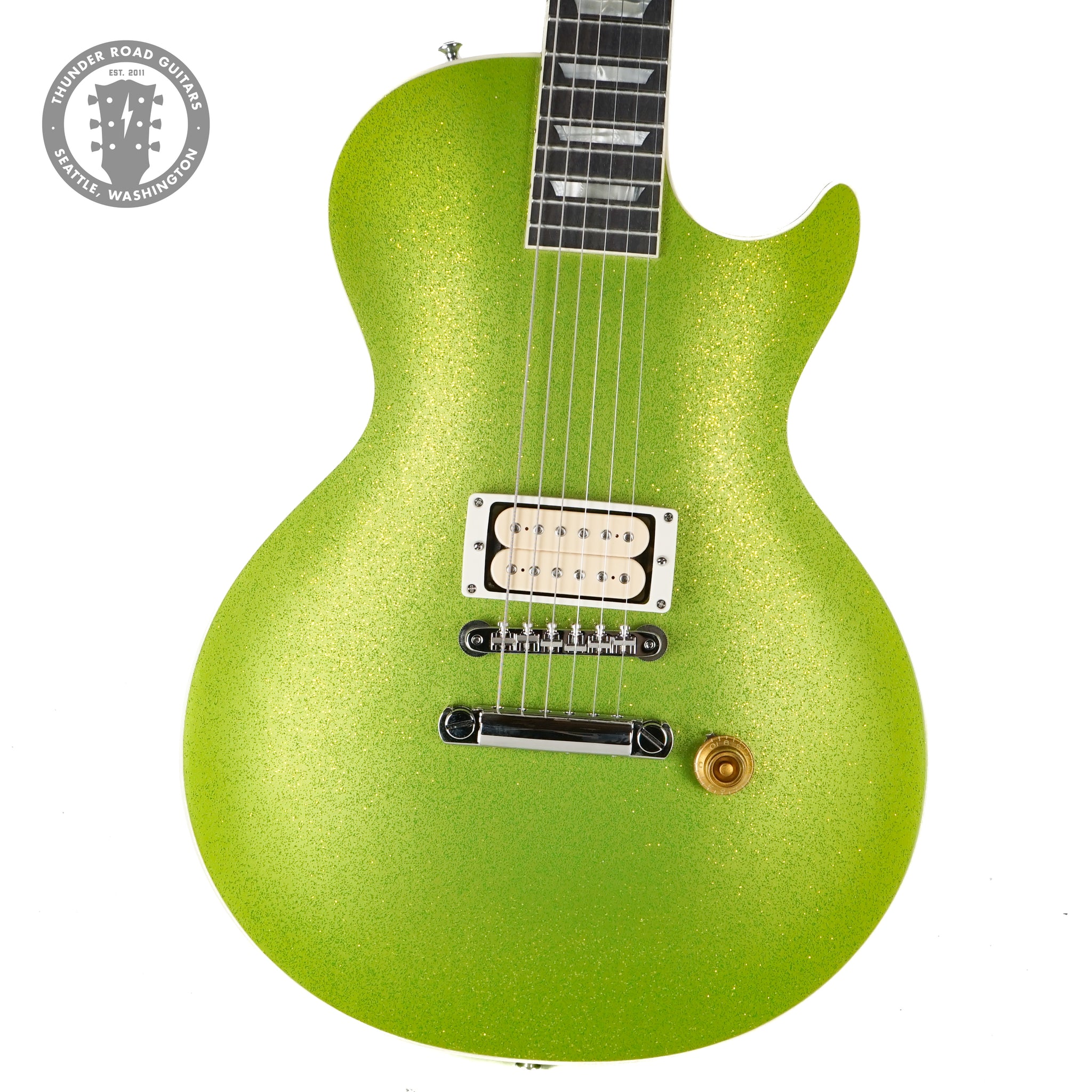 In Collaboration with our friends at Gibson Custom we are proud to present The New Gibson Custom 1957 TRG Stinger Series Les Paul Standard in VOS Gecko Green Sparkle. This one is all gas and no brakes. These guitars feature a single Dimarzio Super Distortion bridge pickup and one volume knob, an Ebony Stinger, and one of the most slammin' sick sparkle finishes this side of the Mississippi. Don't miss out, there's only 6 of these in the world!