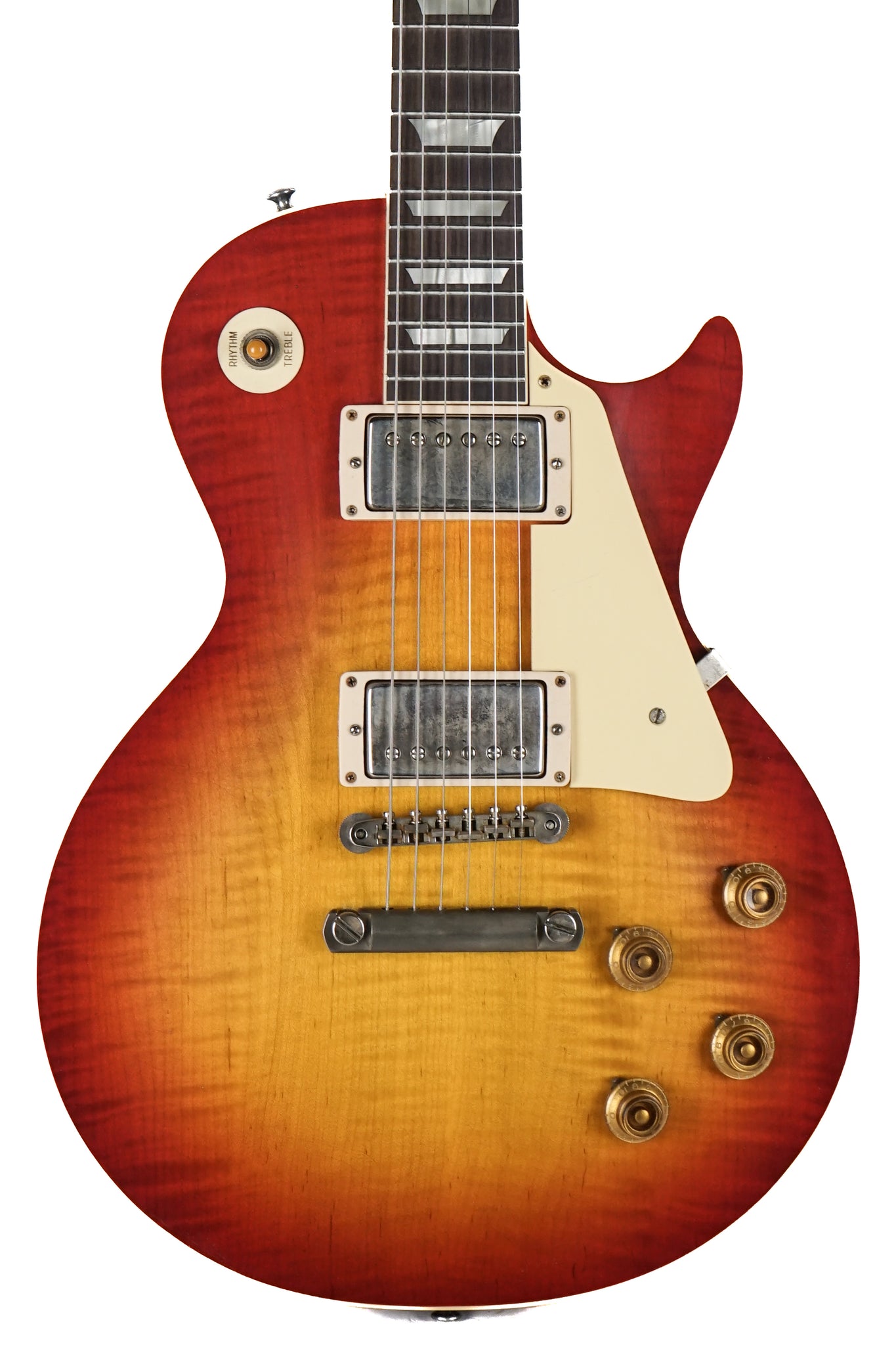 In collaboration with our friends at the Gibson Custom Shop We are thrilled to present the New Gibson 1959 Les Paul Standard Reissue "The Ultimate" in Washed Cherry Sunburst. The latest entry to the TRG Stringer series pays tribute to the instruments made at the now defunct Norther Prairie Music in the mid to late 70's which are near and dear to our hearts. This '59 features a hand picked top, a Zebra unpotted custom bucker in the neck and a double classic white unpotted custom bucker in the bridge. Both pickups have their covers installed but could be removed if you would like. This one also features an Ebony stinger and Murphy Lab Ultra Light Aging. If you are looking for "The Ultimate" '59 Les Paul this is the one for you!