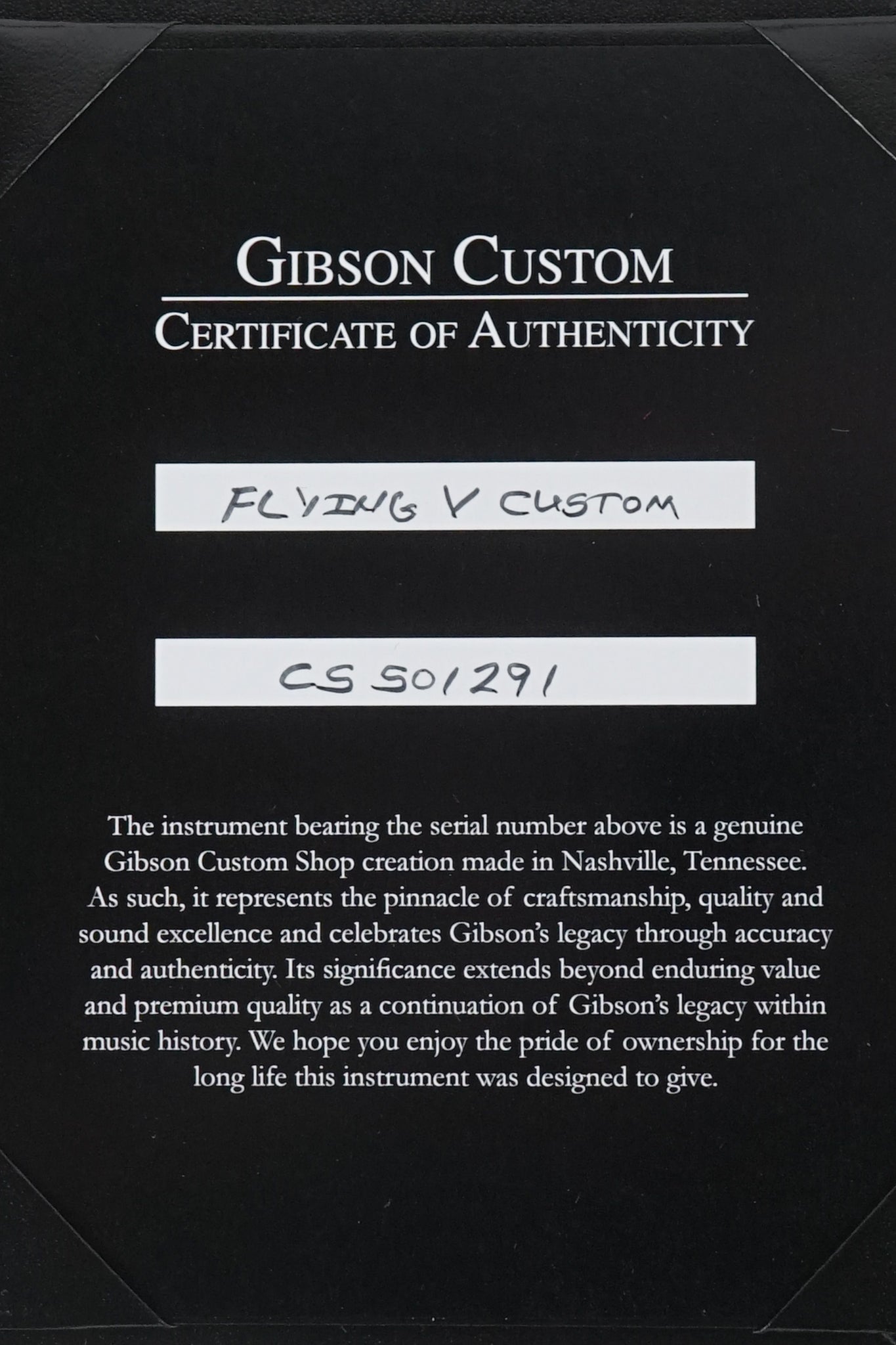 In careful planning with the Gibson Custom Shop and great attention to detail we are delighted to bring you the Thunder Road Gibson Custom Shop Made 2 Measure Gibson Custom Shop Flying V Custom VOS TRG Stinger in Antique Silverburst.