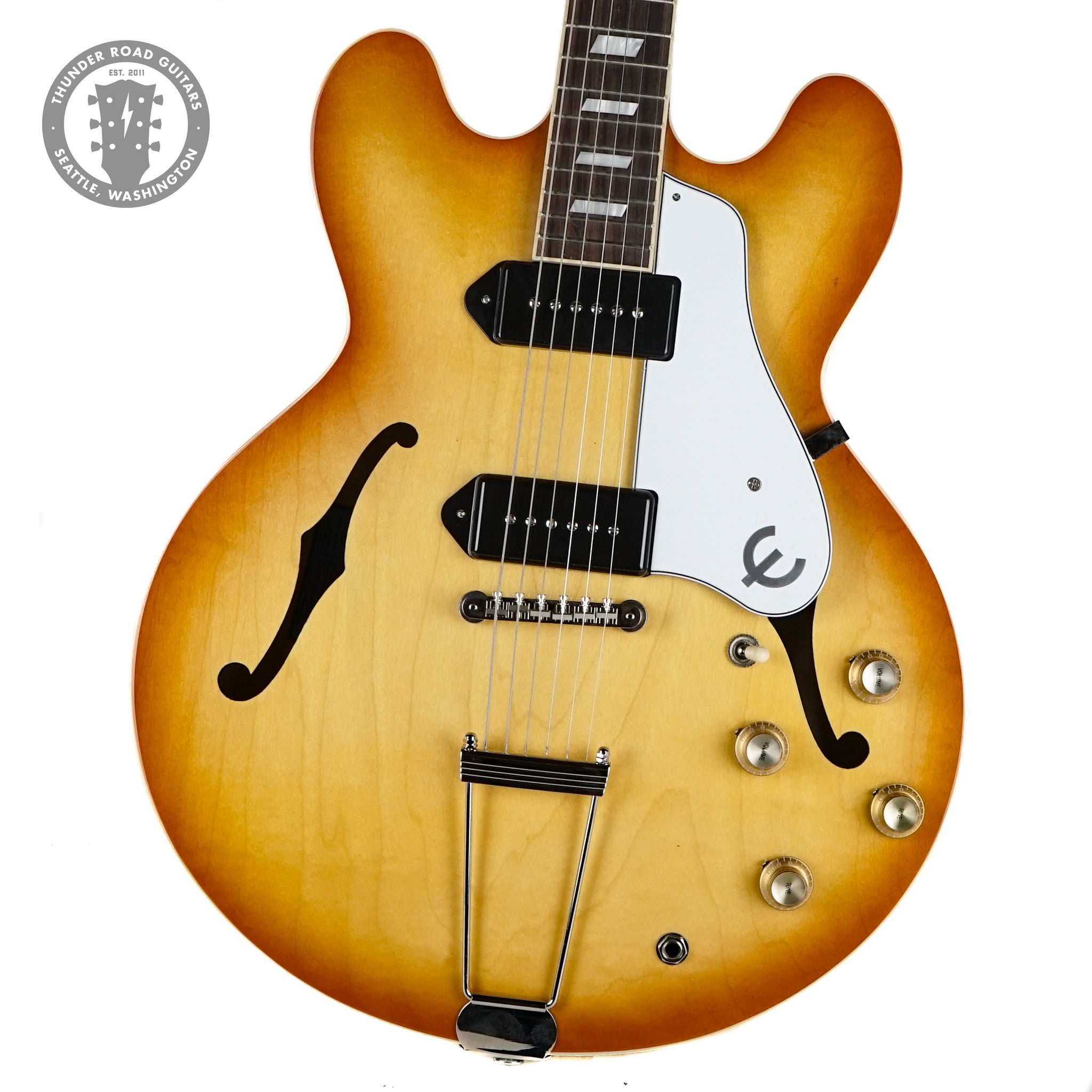 Now made in the USA for the first time in over 50 years! Since its introduction in 1961, the Epiphone Casino™ has been the choice of countless musicians, including Paul McCartney, John Lennon, George Harrison, Keith Richards, Ray Davies, Dave Davies, and Paul Weller. The new Casino from the USA Epiphone Collection features a classic maple and poplar body with a Royal Tan nitrocellulose lacquer finish or a Vintage Sunburst nitrocellulose lacquer finish. The USA Collection Epiphone Casino also features hand-wired electronics with Orange Drop® capacitors and Gibson USA P-90 Dogear single-coil pickups. Featuring Gibson Strings.