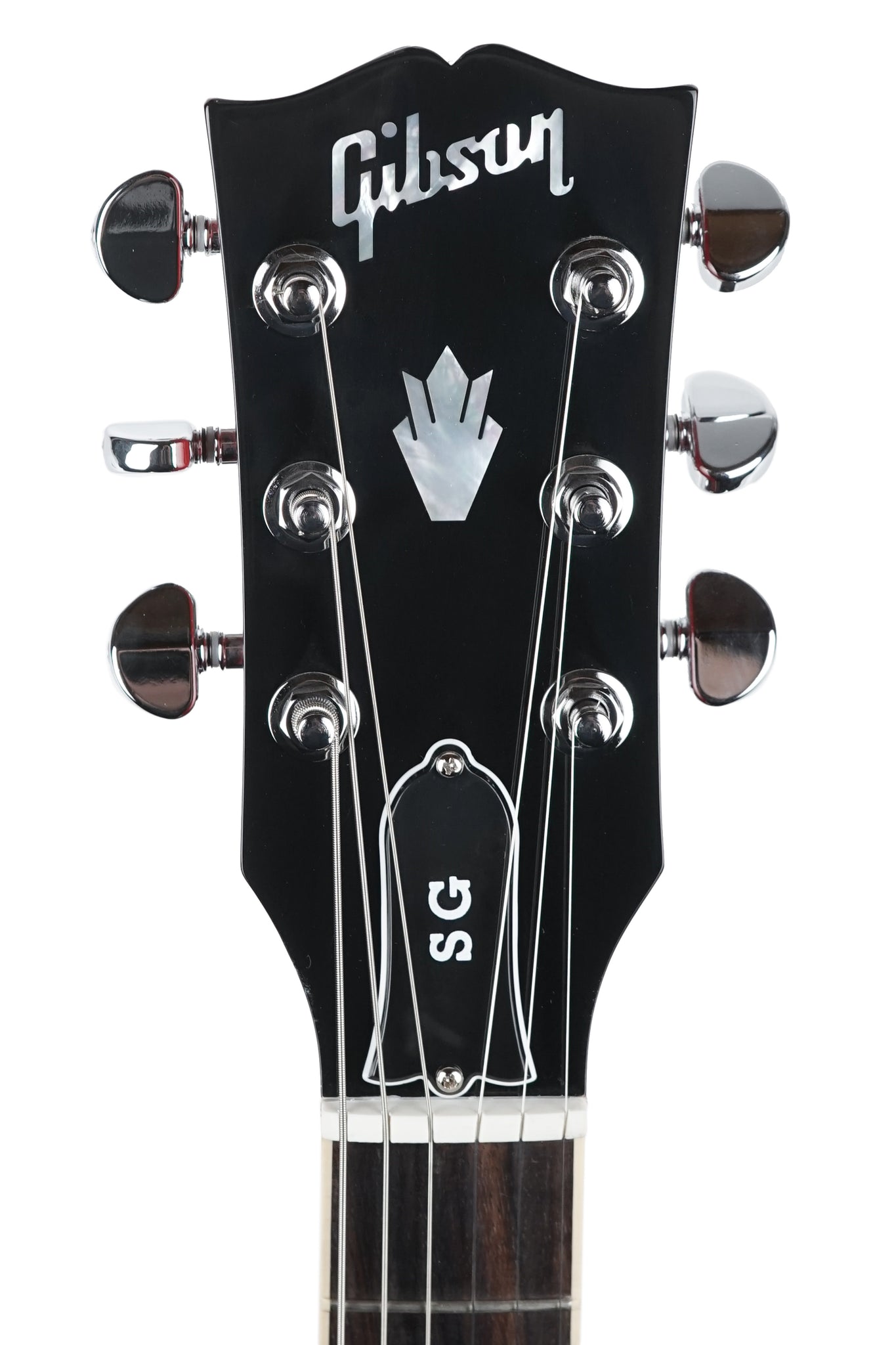 The Gibson SG Standard rocks the classic looks and features associated with the late-60s-style SG models so many players love. A solid mahogany body provides the backbone for singing sustain, while a rounded profile mahogany neck and bound rosewood fingerboard deliver a comfortable playing experience across all 22 frets. A long tenon 19th fret neck joint enhances resonance, making it ideal for everything from vintage blues to modern high-gain solos. In the electronics department, the 490R (neck) and 490T (bridge) Alnico 2 humbuckers produce a versatile range of tones. Their clear, balanced output can easily cover a wide range of genres—softening nicely for warm clean passages and roaring to life when pushing an amp into overdrive. Dedicated volume and tone controls, along with a 3-way toggle switch, offer quick access to any sound you need. Visually, a black 5-ply full-face pickguard sets this SG Standard apart from other models, and chrome-finished hardware adds a timeless touch. Grover Rotomatics tuners keep tuning precise, while the aluminum Tune-O-Matic™ bridge and Stop Bar tailpiece ensure reliable intonation. Rounded out by black Top Hat knobs with silver reflectors, this SG Standard captures the look and spirit of Gibson’s classic late-60s design. A soft shell case is also included, providing convenient protection whether you’re heading to rehearsal or hitting the road. If you’re in search of an iconic, no-nonsense rock machine with a heritage that spans decades, the Gibson SG Standard stands ready to deliver.