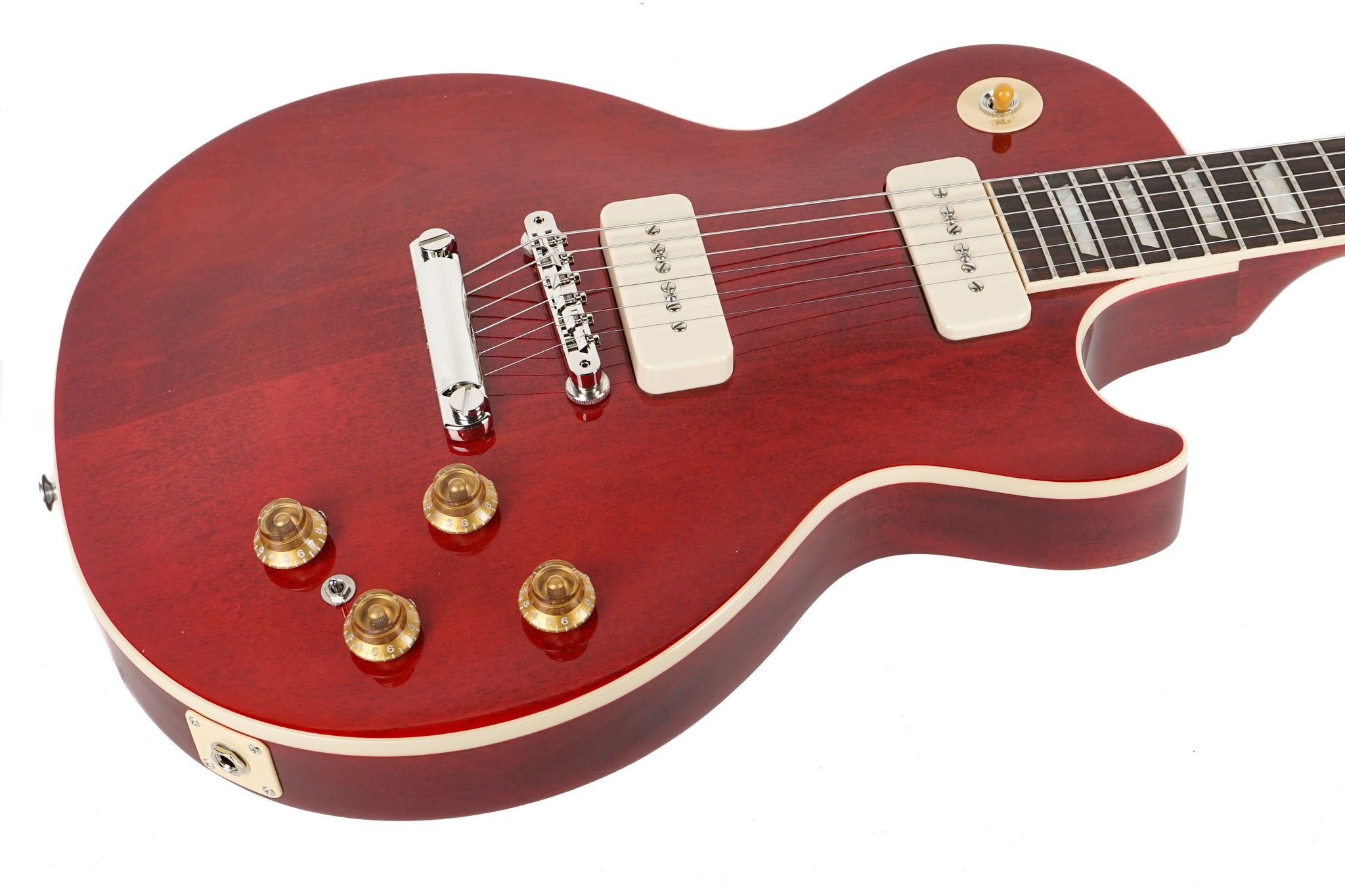 Up for sale is an awesome brand new Gibson Warren Haynes Les Paul Standard 50's P-90 in a cool Sixties Cherry finish. This guitar comes with a hardshell case and a fully professional setup by our in house tech. We are a proud Gibson dealer and this one ships to you with a full manufacturer warranty. Weight: 9lbs. 7oz.