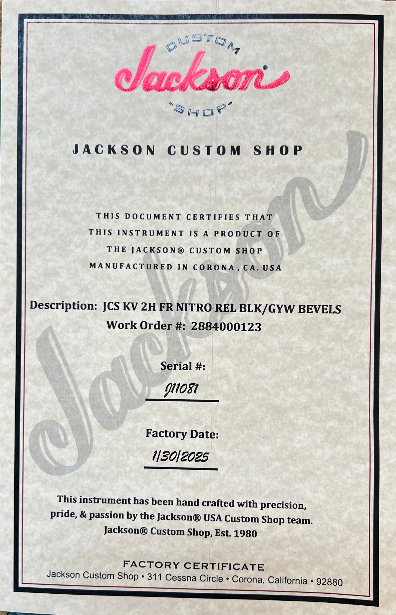 New Jackson Custom Shop King V Relic Black w/ Yellow Bevels Nitro Relic