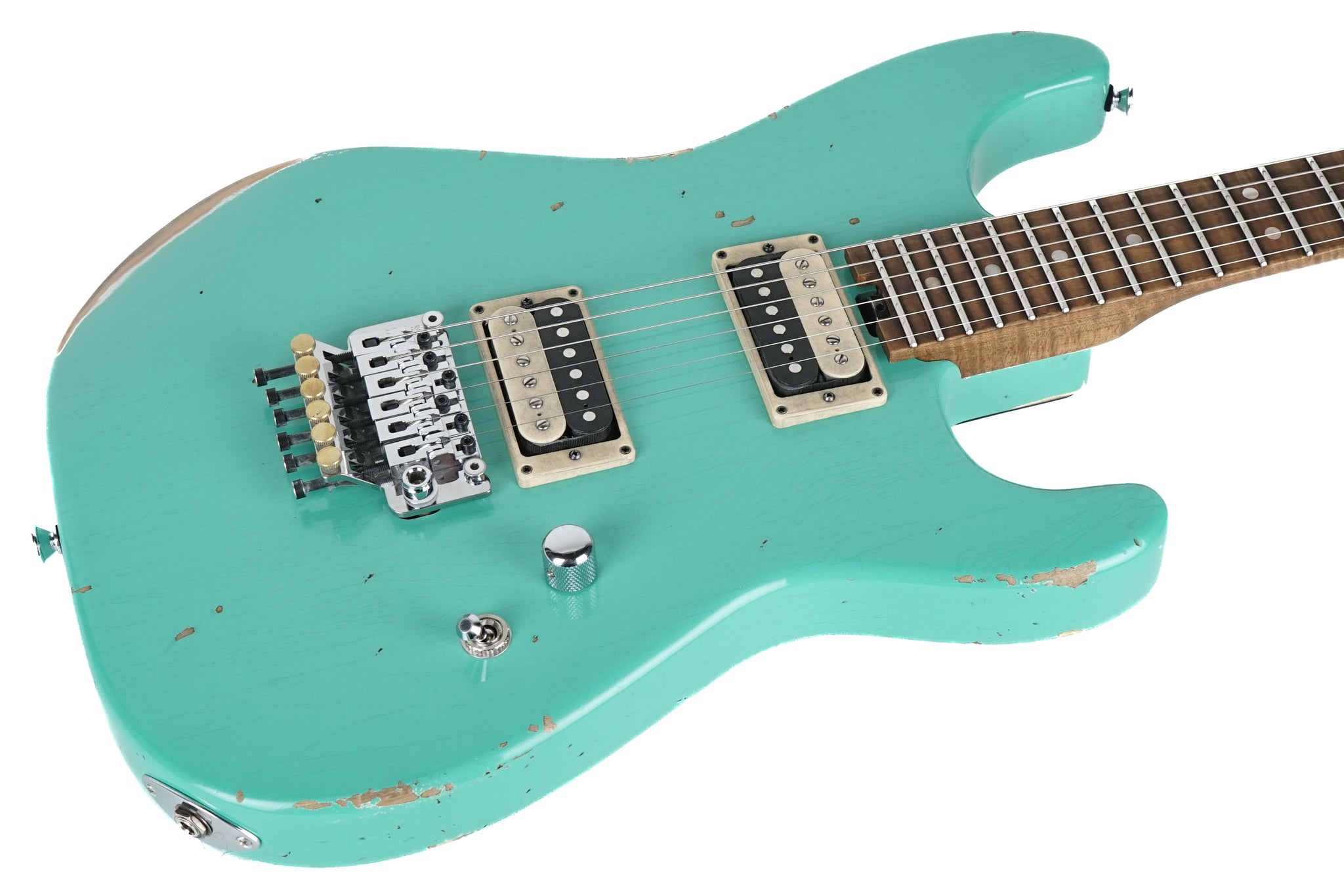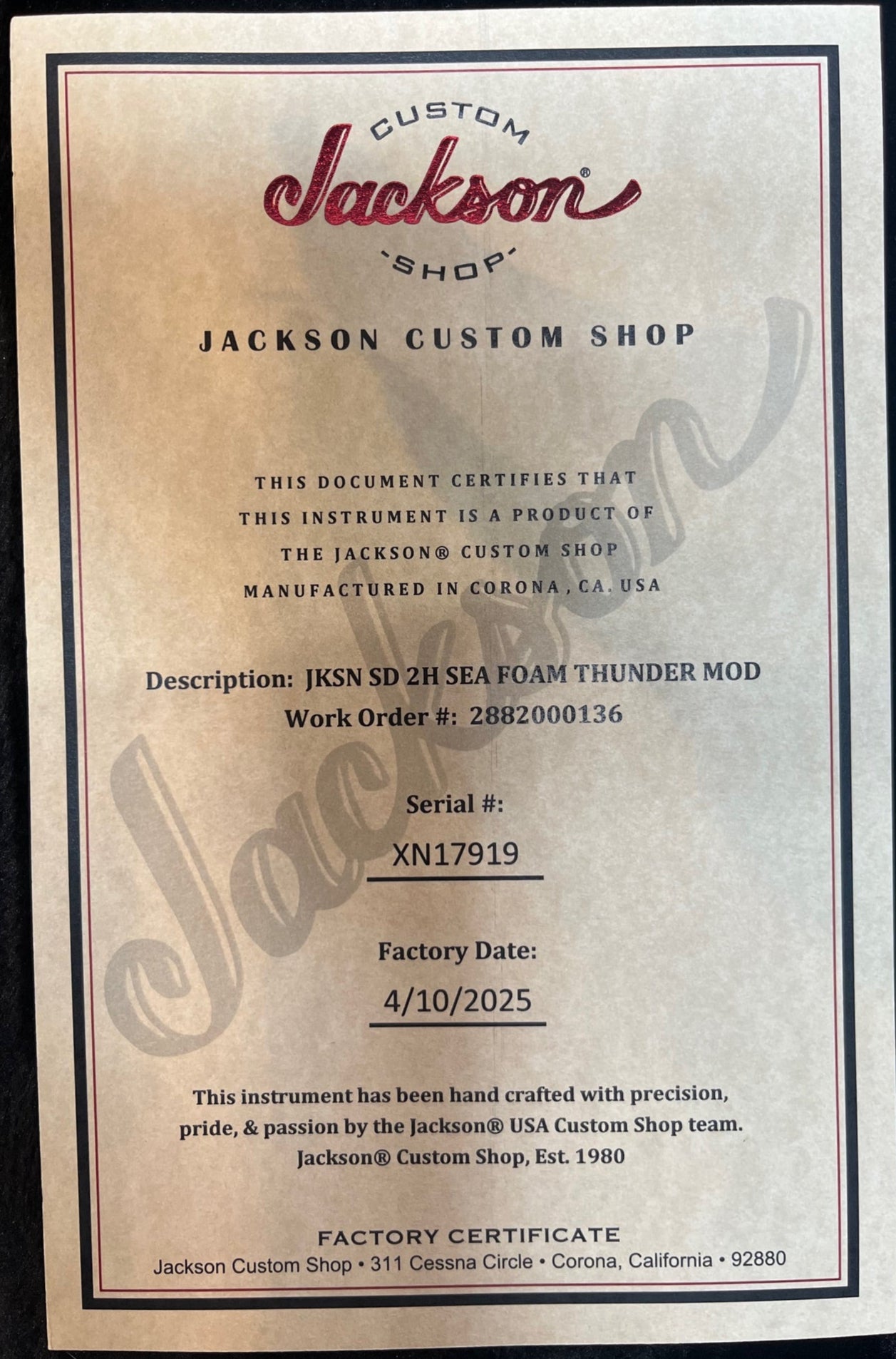 In careful planning with the Jackson Custom Shop we are pleased to present the Jackson Custom Shop Thunder Mod San Dimas Nitro Relic in Seafoam Green. These guitars are a true labor of love and we are absolutely thrilled with how they turned out. This instrument was designed to capture the magic of the elusive Strat Head Jackson guitars of the early 80's which have become quite rare. Each Thunder Mod comes complete with a full professional setup, Jackson molded hard case, certificate of authenticity and the TRG Rock-n-Roll stamp of approval. Weight: 7lbs. 5oz.