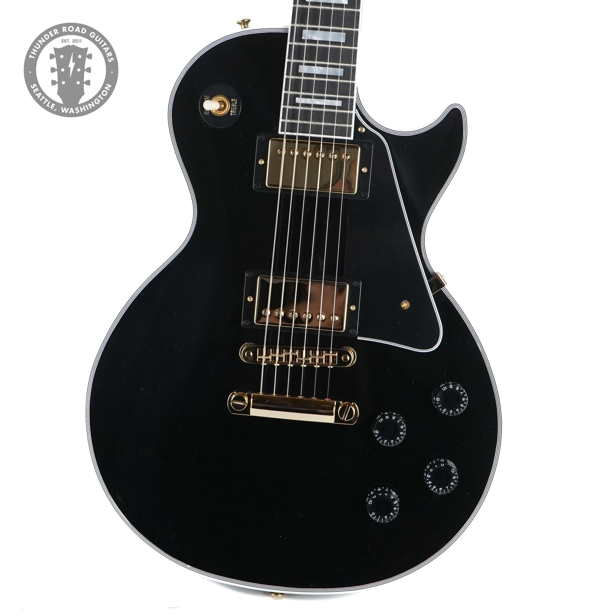 Up for sale is a New Gibson Custom Shop Les Paul Custom in Ebony w/ Ebony Fingerboard. Weight: 9lbs. 10oz.