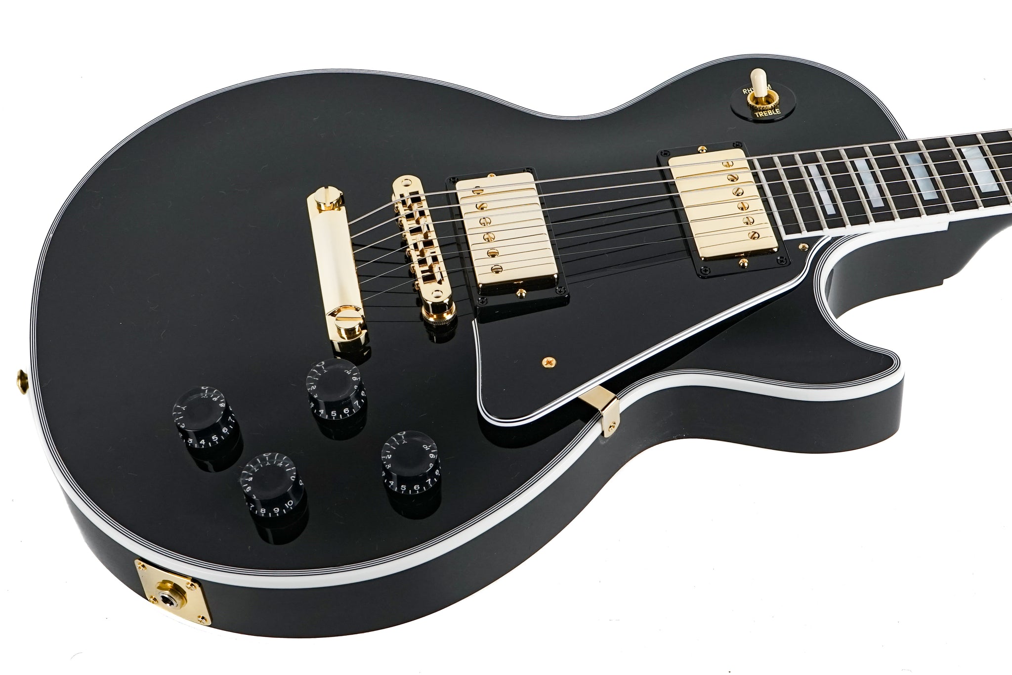 As the flagship model from Gibson Custom, the Les Paul Custom lives up to the high standards set by its 1950s archetype while evolving to a level of tone and performance more suited to today's musical demands. Beneath the layers of its "tuxedo" appointments lies the crisp, edgy voice of a matched 490/498 humbucker set, a solid Ebony fingerboard, a long neck tenon for maximum sustain and a two-piece maple top over a solid mahogany body which adds the perfect amount of sonic bite to everything from jazz to hard rock. It sounds as good as it looks, and it looks as good as it sounds!