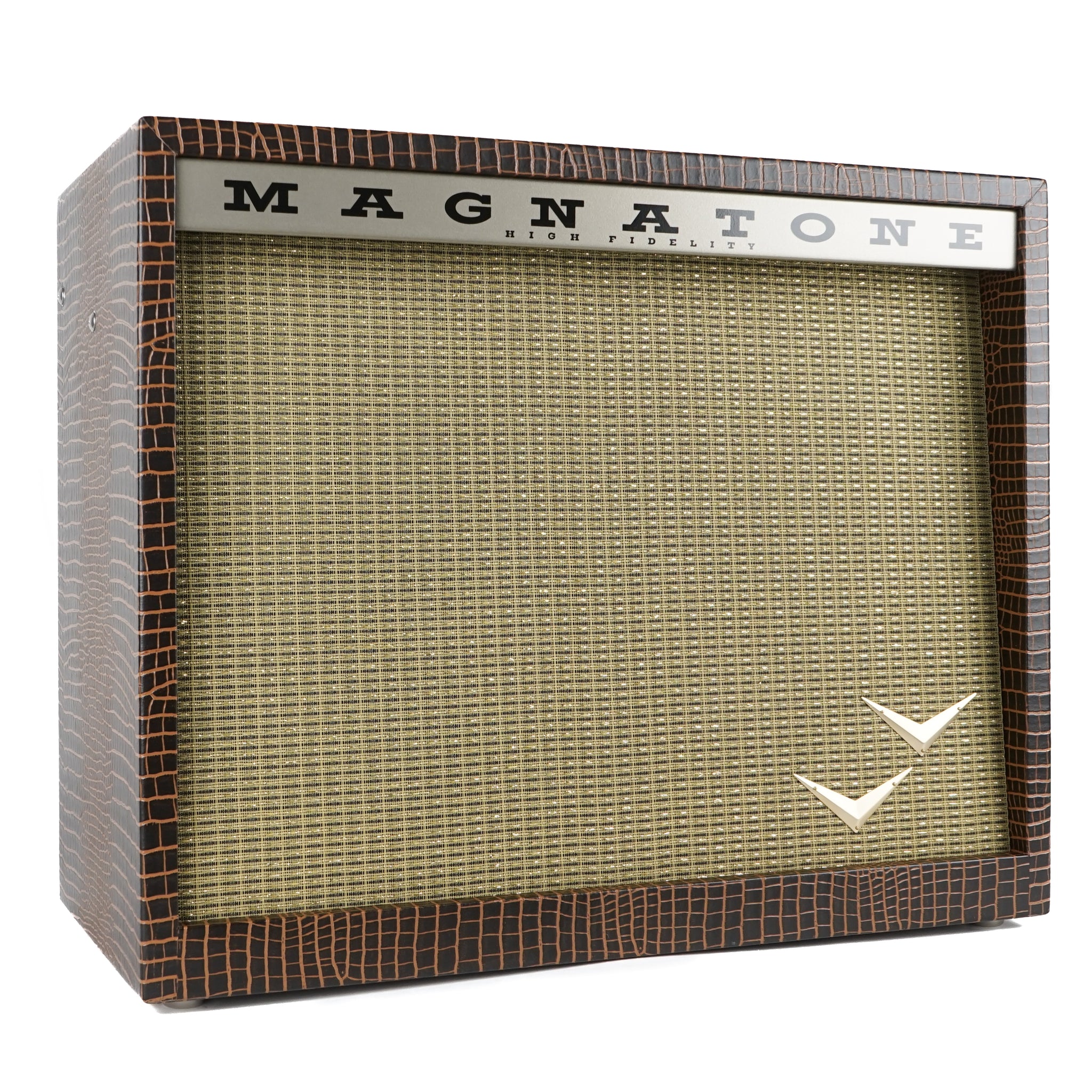 Up for sale is a New Magnatone Panoramic Stereo Combo Amp. This amp is killer and comes in a Thunder Road Exclusive Colorway of Brown French Alligator Tolex and a Gold Stripe Grill. This amp looks absolutely stunning in person and sounds even better. Thunder Road Guitars is Washingtons only Magnatone dealer and we could not be more proud. Come by and give this one a spin!