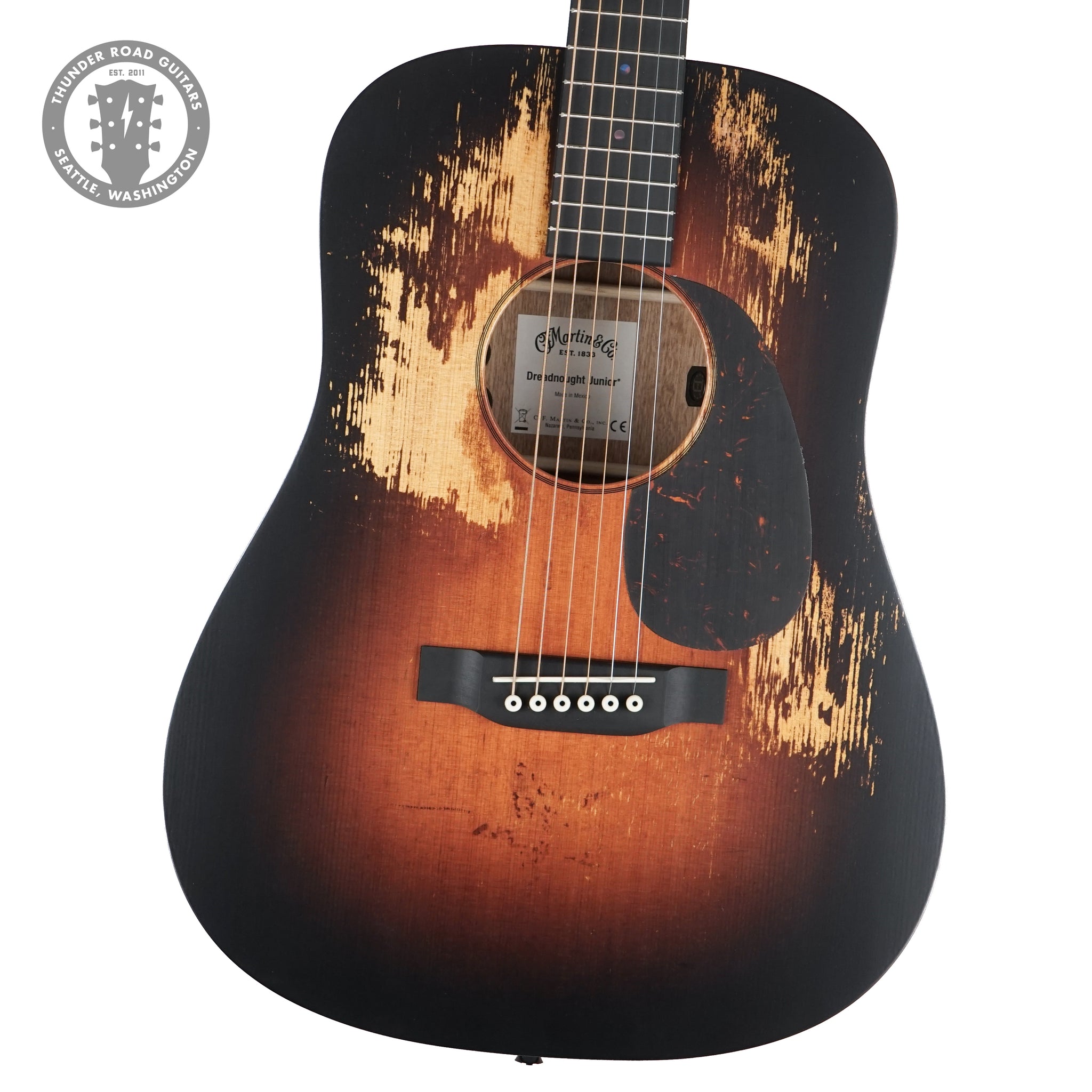 The D Junior E StreetLegend Burst is your full-scale musical companion, built to bring the soul of a vintage Martin to every adventure. This all-new Junior Series Dreadnought combines Martin’s legendary craftsmanship with a road-ready size, offering the bold tone and deep resonance you’d expect from a larger guitar in a compact, travel-friendly package. Its solid spruce top, featuring a sunburst finish with visual wear inspired by historic models in the Martin Museum, gives it a storied character that feels like an old friend from the first strum. Designed for wherever your music takes you, the D Junior E StreetLegend Burst delivers with its solid sapele back and sides, scalloped spruce X-bracing, and Performing Artist neck with a familiar 24.9” scale length for effortless playability. Whether you’re strumming on the couch, hitting the studio, or plugging in for a live set, Martin E1 electronics with a built-in tuner and volume, tone, and phase controls ensure your sound stays clear and true. Ergonomic refinements like a gently beveled fingerboard edge and optimized string spacing make this guitar even harder to put down. Packaged with a durable softshell case, the D Junior E StreetLegend Burst is your full-scale ticket to uncompromising sound and style—wherever inspiration strikes.