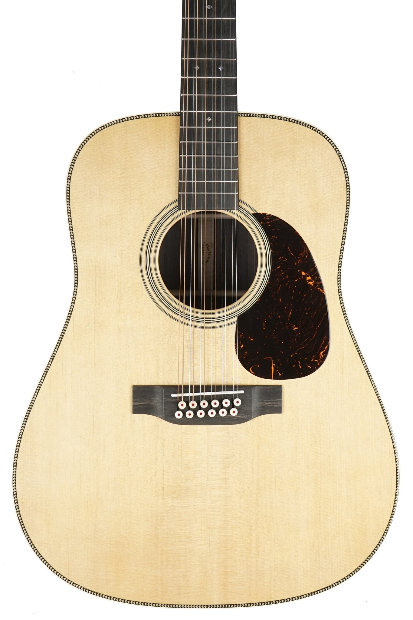 The Martin HD12-28 is a trusted choice for players seeking the lush, layered sounds that only a 12-string guitar can deliver. Beloved by generations of players for its ability to add depth and vibrant tonal layers, its Dreadnought body size produces a bold, projective tone with strong bass, clear trebles, and rich overtones, perfectly complemented by the chime and texture of the extra octave strings. Handcrafted with a solid spruce top and solid East Indian rosewood back and sides, the HD12-28 offers a resonant voice that’s balanced for all playing styles, whether you’re fingerpicking or strumming. The satin neck, featuring a Golden Era (GE) Modified Low Oval profile, high-performance taper, and shorter 24.9" scale length, ensures smooth, comfortable playability. Complete with antique white binding, bold herringbone inlay on top, an ebony fingerboard adorned with abalone diamond and square inlays, and chrome enclosed gear tuners, the HD12-28 is a guitar you can trust to unleash the artist within.