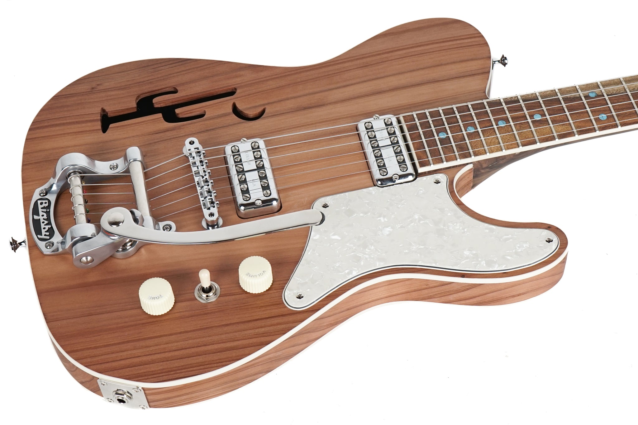 The stars are out tonight! A product of the Post-War Boom, the first commercially successful solid-body electric guitar—the Broadcaster—was released in 1950 and with it, Leo Fender changed the music industry forever. After seven decades, the “T-style” design remains a golden arrow in guitarists’ quiver to this day. With features uncommon with T-style guitars, such as a set-neck and a 24.75” scale length, the Tone Ranger Guitars “Desert Star” model is my take on the classic. From searing solos as hot as Death Valley in July, to warm rhythms as mellow as an evening under the saguaro, the Desert Star puts legendary tone in your hands.