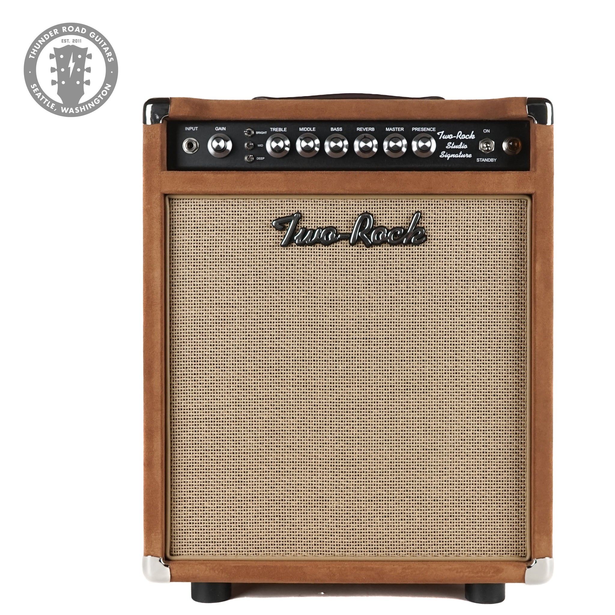 Up for sale is a new Two Rock Studio Signature 1x12 Combo Amp in Tobacco Suede Tolex and a Cane grill cloth. We are the Pacific Northwest's only authorized Two Rock dealer. Stop by and check our selection!
