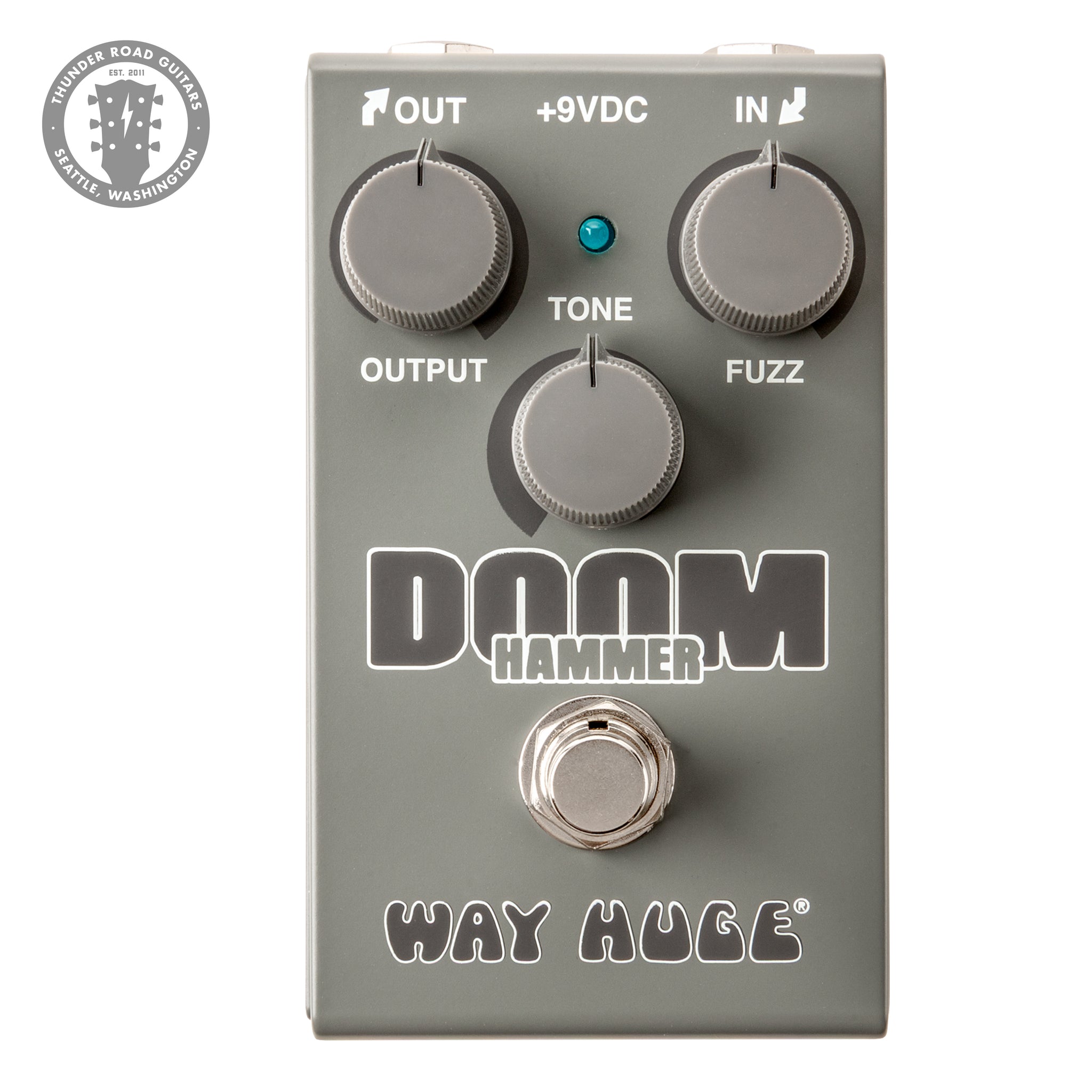 The Way Huge Doom Hammer Fuzz will pound your ears with thick saturation worthy of high-desert riffage and dense walls of fuzz straight from a ‘90s fever dream. It all began in the original Way Hugegarage lab back in 1998 when Jeorge Tripps modified an op-amp-powered fuzz circuit from 1978 for the band Oranger. Prized for its less pronounced scoop, Mr. Tripps refined its design for a tighter low end and more reliable performance when played live on stage. Many years later he would craft a handful of prototypes based on that modded original—and these would be the basis for the sonic sledge now called the Doom Hammer Fuzz. Output, Tone, and Fuzz dials allow you to tailor the pedal’s velvety harmonics to your rig. Try a low Fuzz setting for the most delightful crunch.