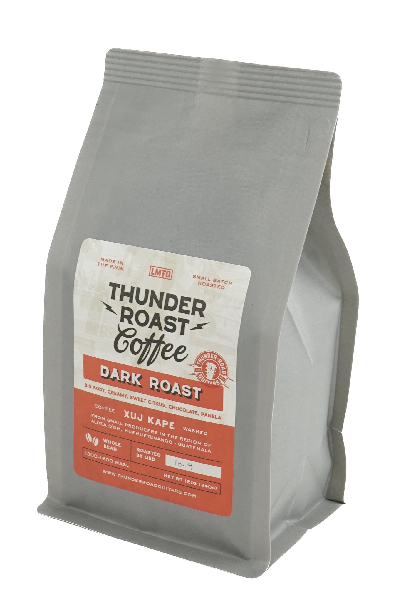 In collaboration with our friends at QED Coffee here in West Seattle we are pleased to bring you Thunder Roast. Big-bodied and creamy ,with hints of sweet citrus, chocolate and panela. Find this coffee in store at Thunder Road Guitars SEA or QED Coffee.