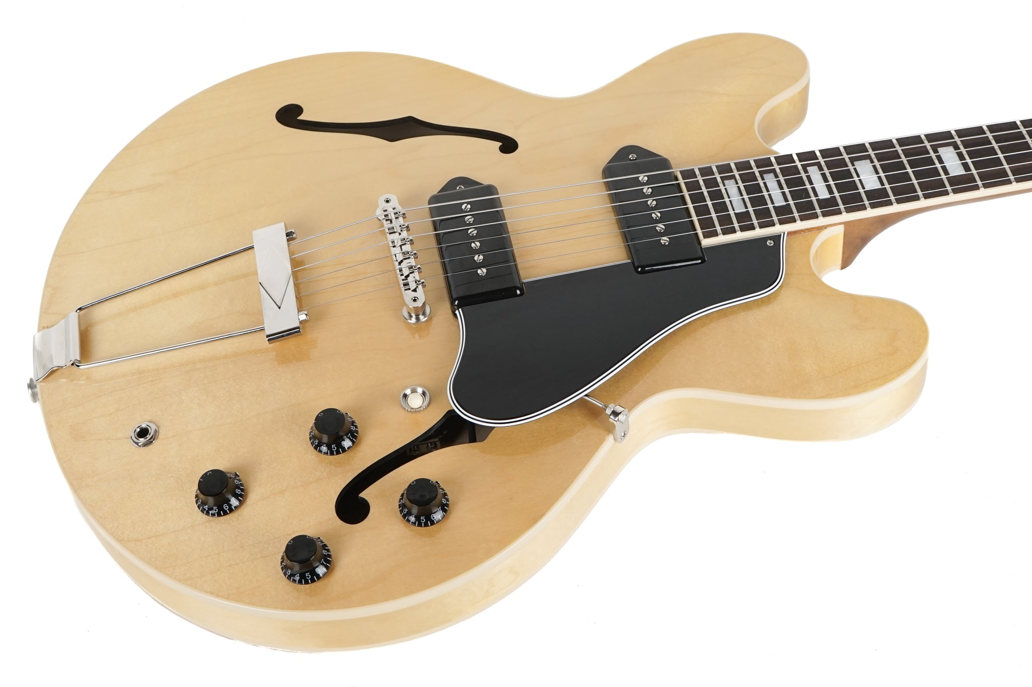 Up for sale in the shop is a really clean 2019 Gibson ES-330 in a Natural finish. It's obvious that this one was taken care of and not gigged out . It shows very minimal handling wear. Really the only notable wear that is visible would be some really light scratches on the pick guard. If you are looking for a killer deal on a really clean ES-330 look no further. This one came to us with its original hardshell case and will come to you professionally setup by our in house tech. Weight: 6lbs. 5oz.